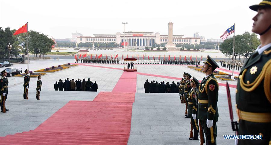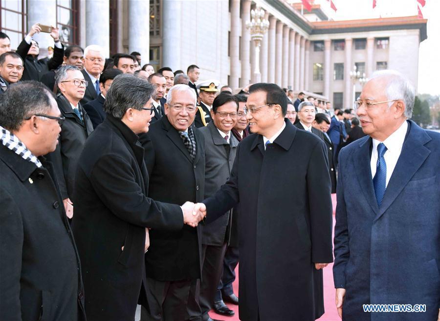 Chinese Premier Li Keqiang (L) holds a welcome ceremony for visiting Malaysian Prime Minister Najib Razak before their talks in Beijing, capital of China, Nov. 1, 2016. (Xinhua/Li Tao)