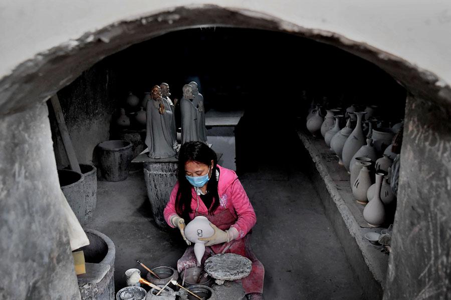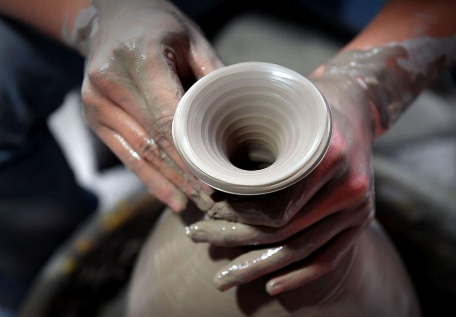 Clay bodies are showcased at a porcelain workshop in Shenhou town, Yuzhou city in Central China's Henan province, Nov 1, 2016. (Photo/Xinhua)