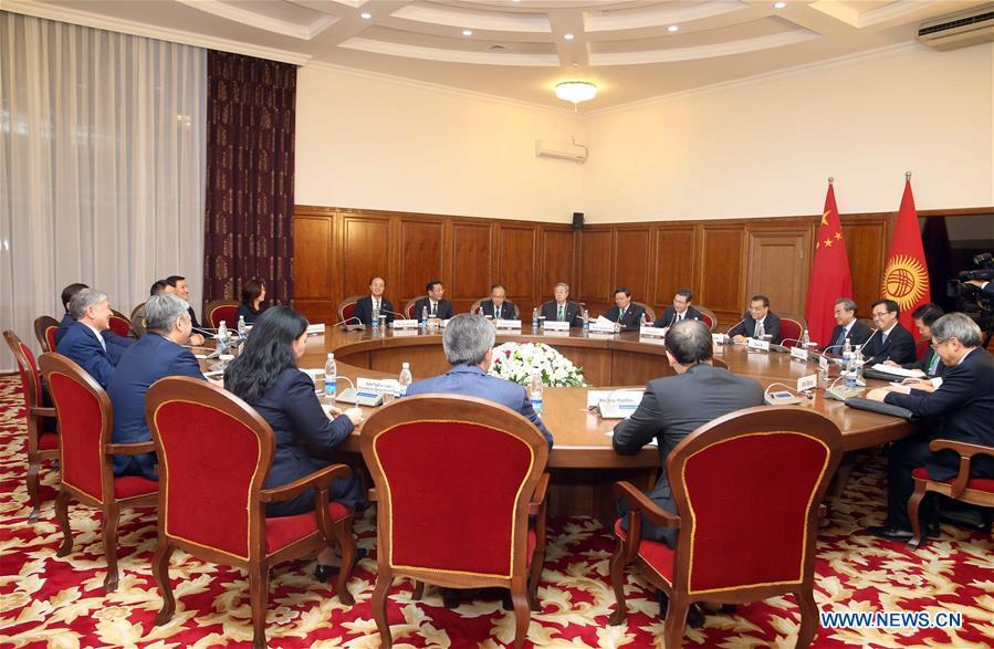 Chinese Premier Li Keqiang (L) meets with Kyrgyz President Almazbek Atambayev in Bishkek, Kyrgyzstan, Nov. 2, 2016. (Photo/Xinhua)