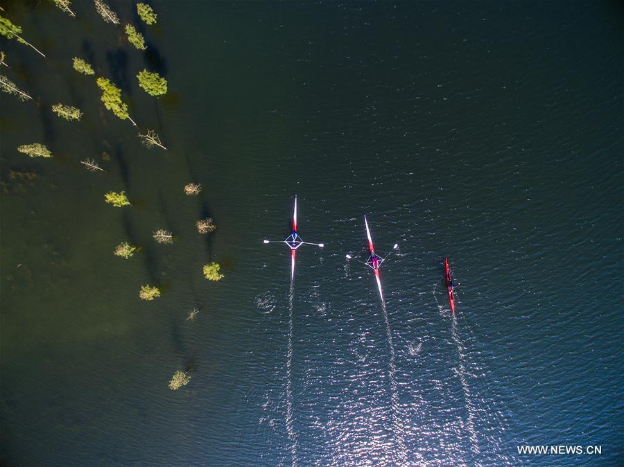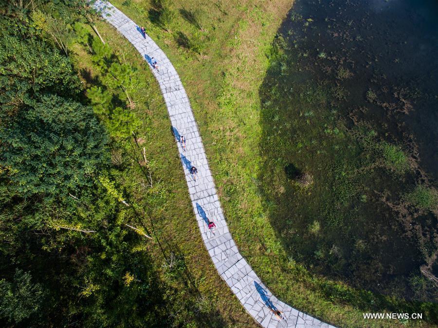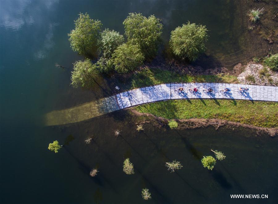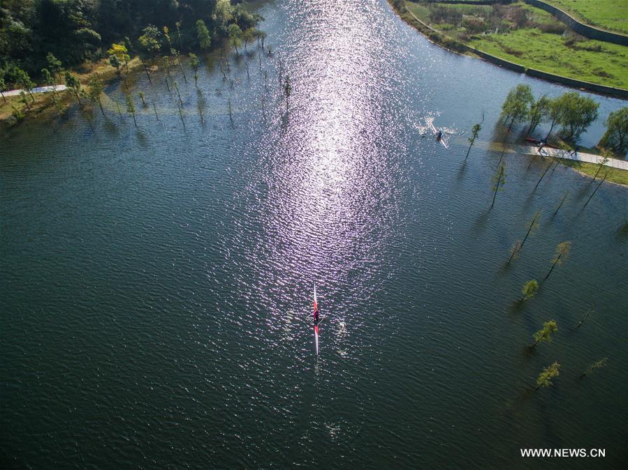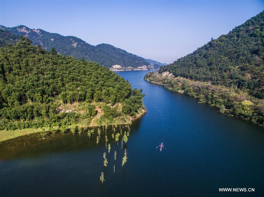 Aerial photo taken on Nov. 3, 2016 shows the Fenghuang Lake in Anji County, east China's Zhejiang Province. (Photo/Xinhua)