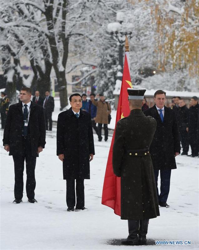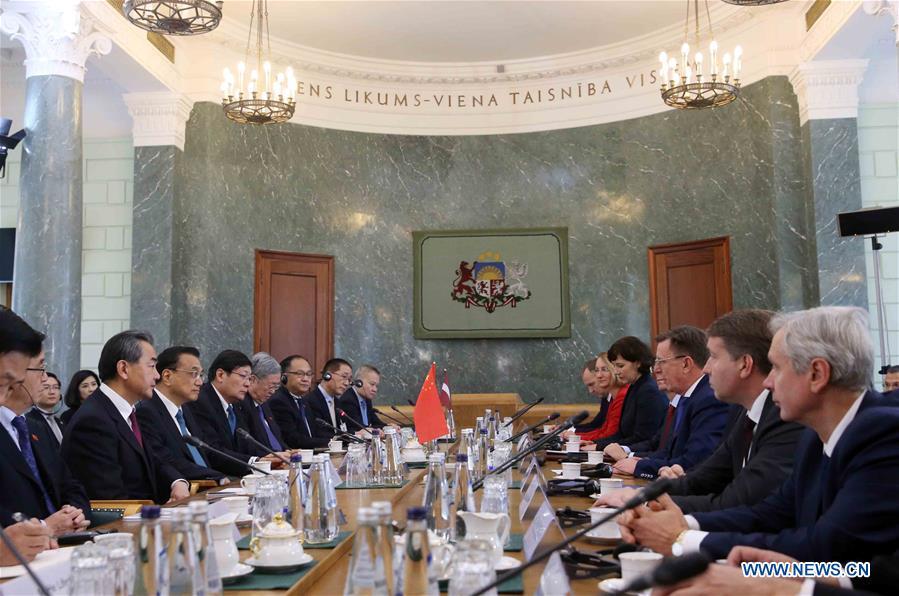 Chinese Premier Li Keqiang (L) holds talks with his Latvian counterpart Maris Kucinskis in Riga, Latvia, Nov. 4, 2016. (Photo: Xinhua/Rao Aimin)