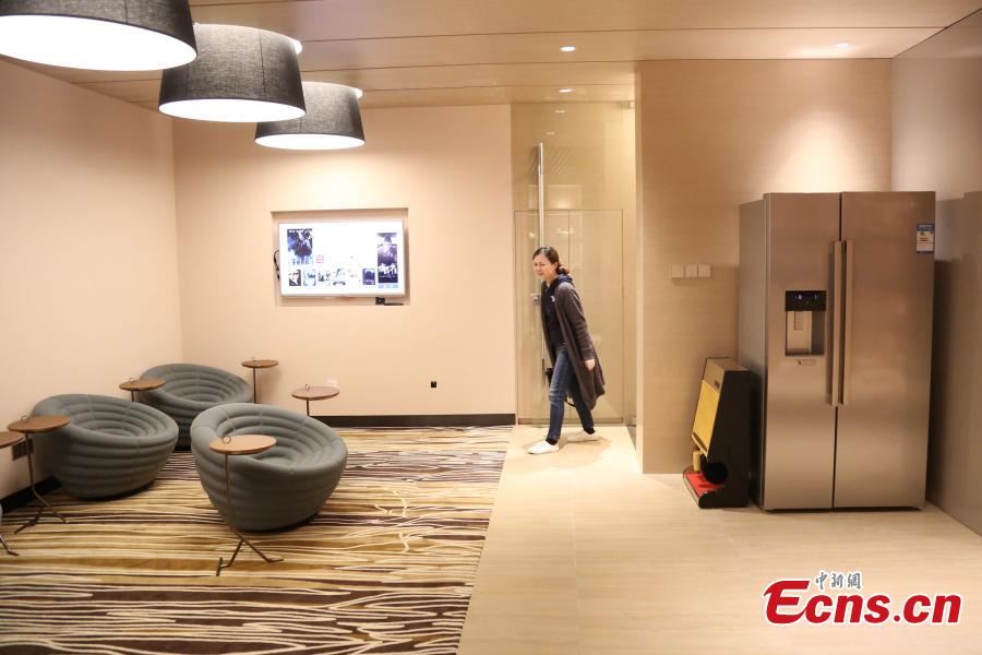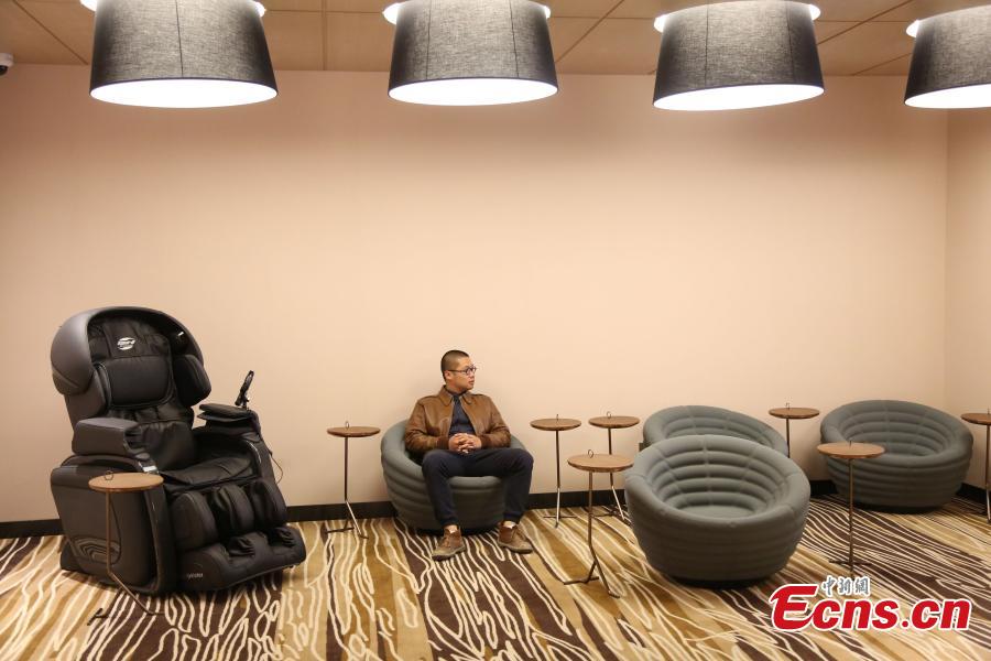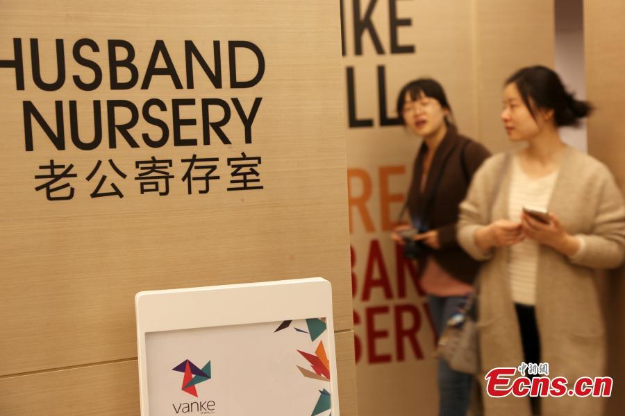 A man rests at a “husband cloakroom” in a shopping mall in Shanghai on November 4, 2016.