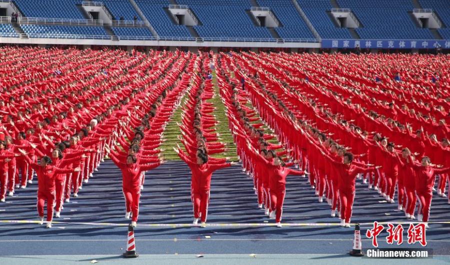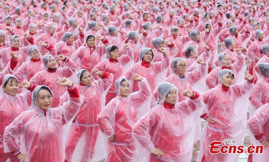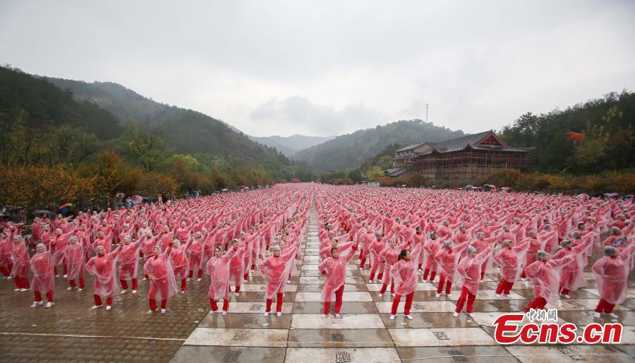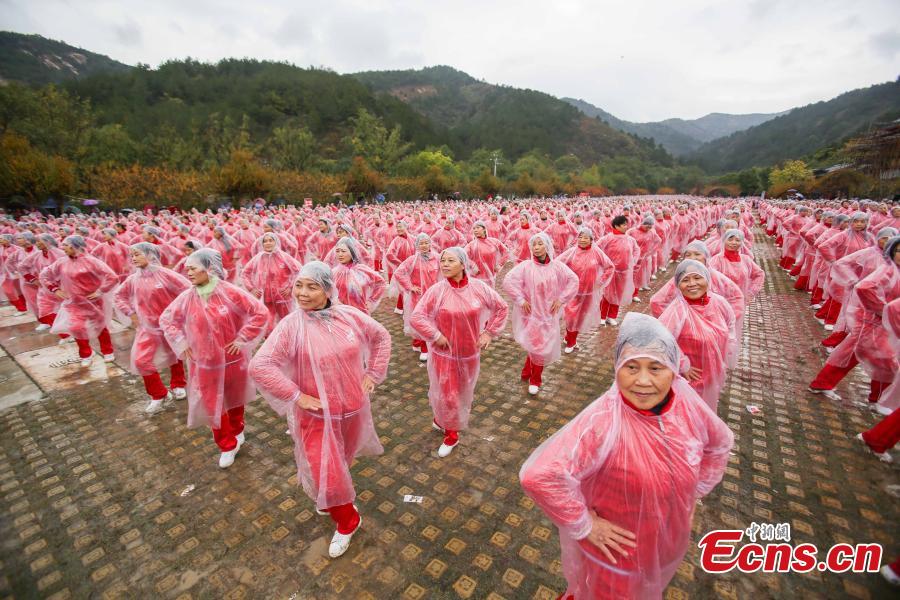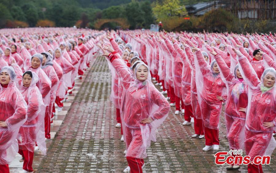 Dancers perform on Yunwu Mountain in Wuhan, Hubei province, on Nov 7, 2016. A total of 50,085 people in 14 cities, including Beijing, Tianjin and Jinan, danced at the same time, setting a Guinness World Record for multiple-site large-scale dancing.(Photo: China News Service/ Zhang Chang)