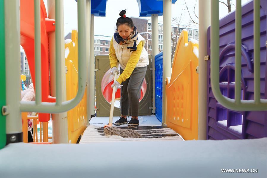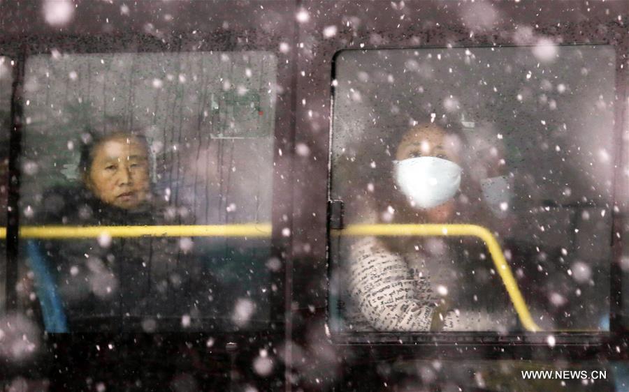 A traffic policeman directs traffic in snow in Huludao City, northeast China's Liaoning Province, Nov. 7, 2016. A cold front will bring gales and drag temperatures down in central and east China over the next three days. (Xinhua/Tian Jia)