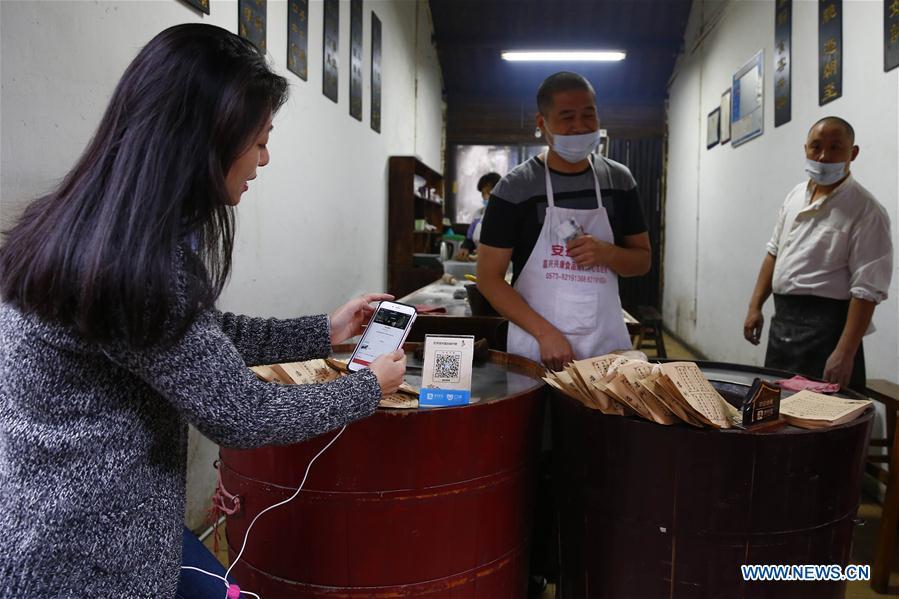 A tourist borrows a portable power pack with a mobile phone app in Wuzhen, east China's Zhejiang Province, Nov. 7, 2016. The third World Internet Conference will be held in Wuzhen from Nov. 16 to 18. (Photo/Xinhua)