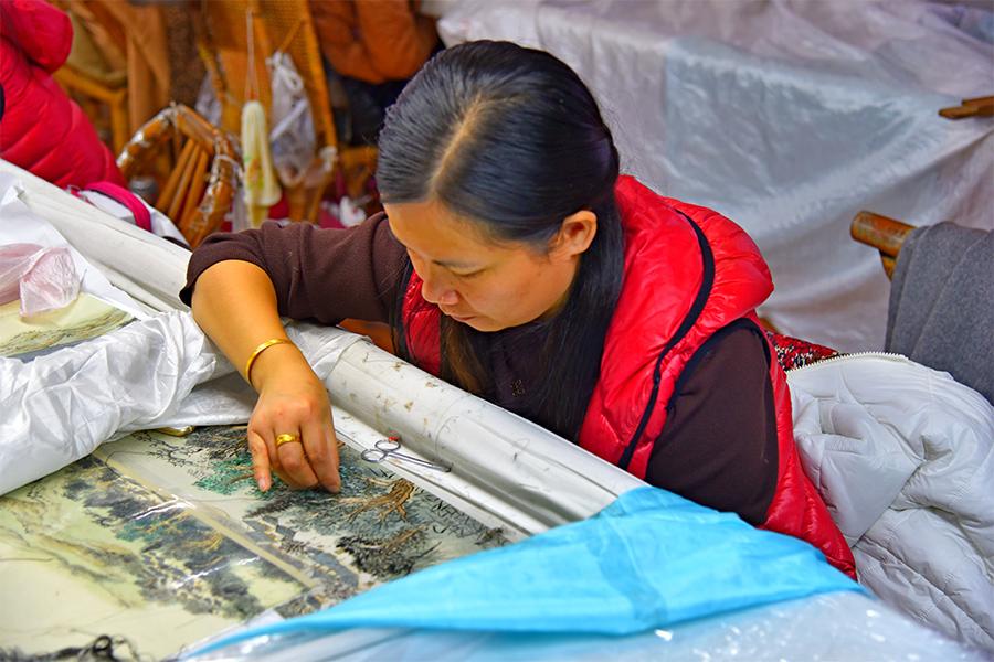A Su embroidery work that describes the ancient daily life of Suzhou people. (Photo/chinadaily.com.cn)