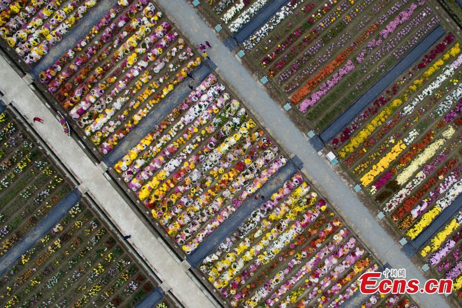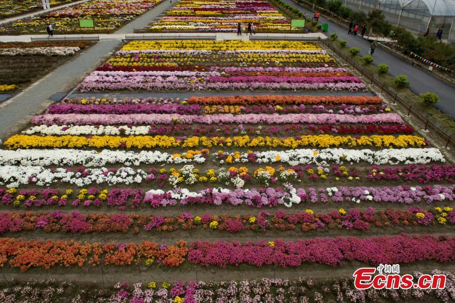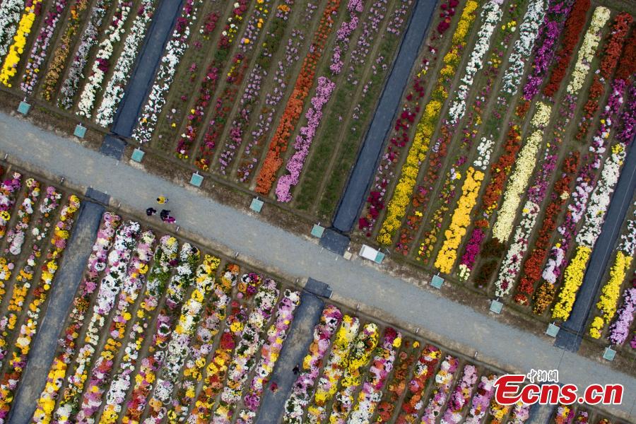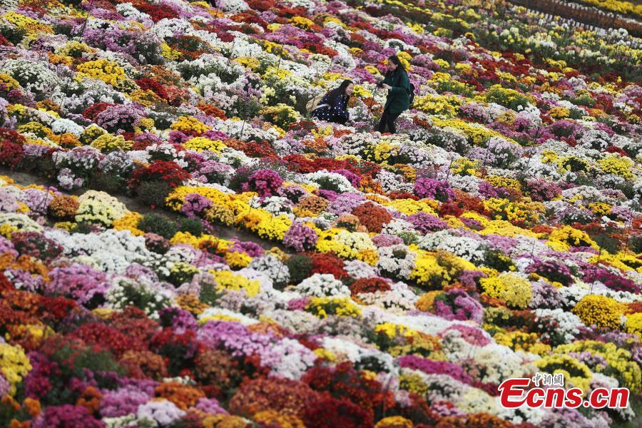 Visitors enjoy the blooming chrysanthemums at a flower base of Nanjing Agricultural University in Nanjing, East China’s Jiangsu province on November 9, 2016. Chrysanthemums of over 3,000 varieties are on display at the base. (Photo: China News Service/ Yang Bo)