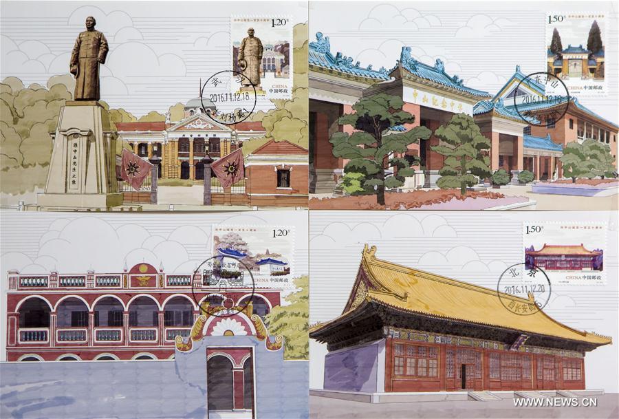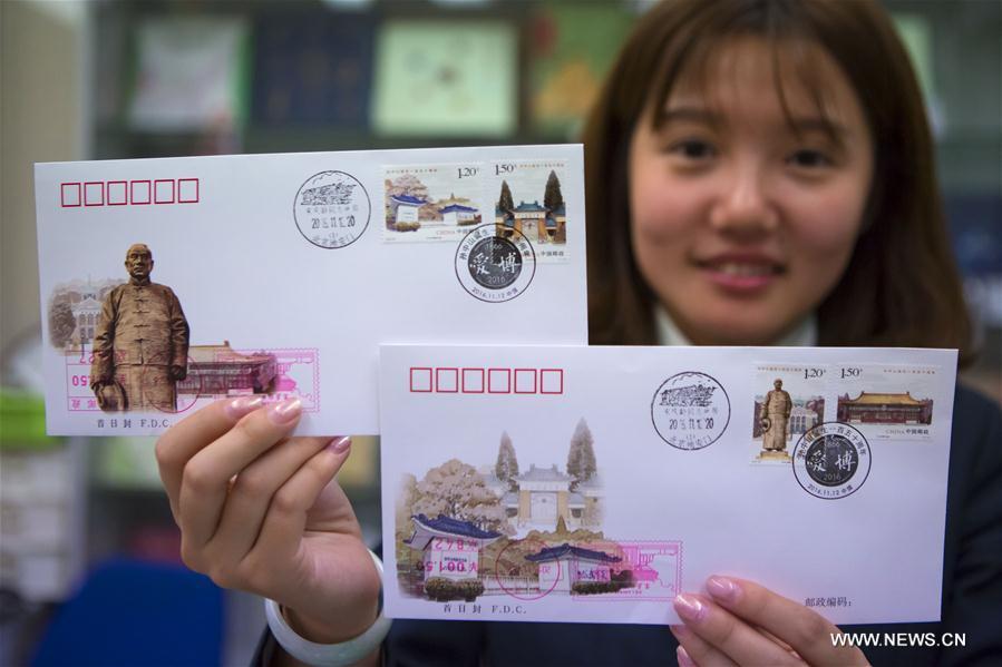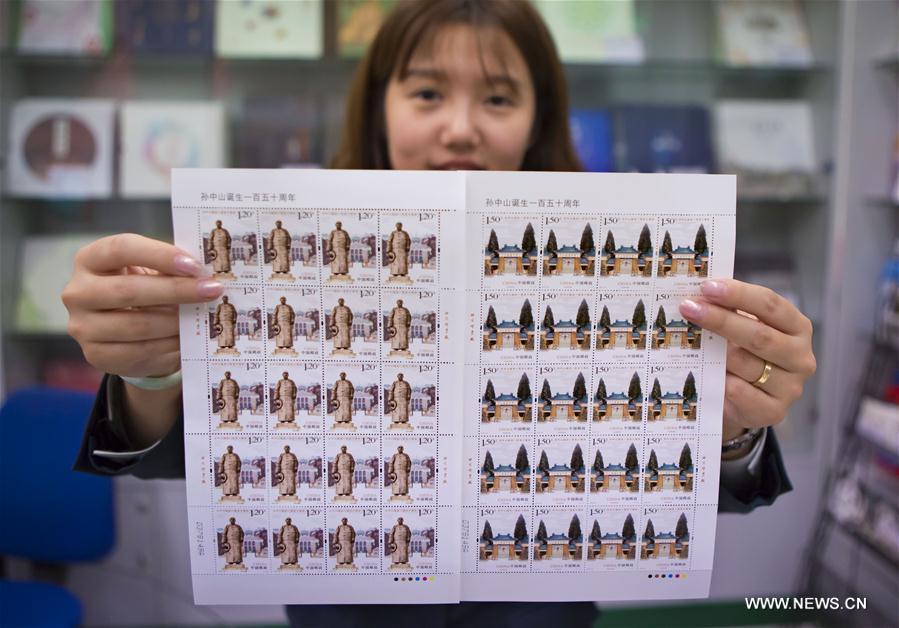 A staff member shows commemorative envelopes for the 150th anniversary of Sun Yat-sen's birth in Beijing, capital of China, Nov. 11, 2016. China Post will issue a set of commemorative stamps for the 150th anniversary of Sun Yat-sen's birth on Nov. 12. (Photo/Xinhua)