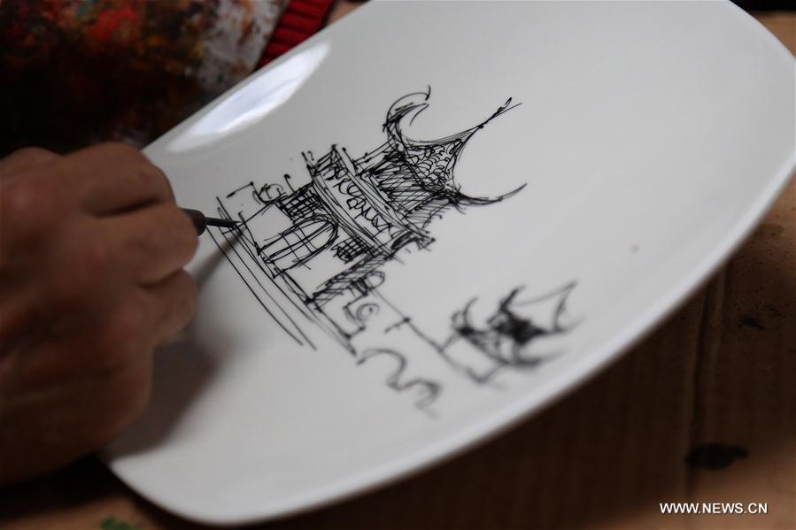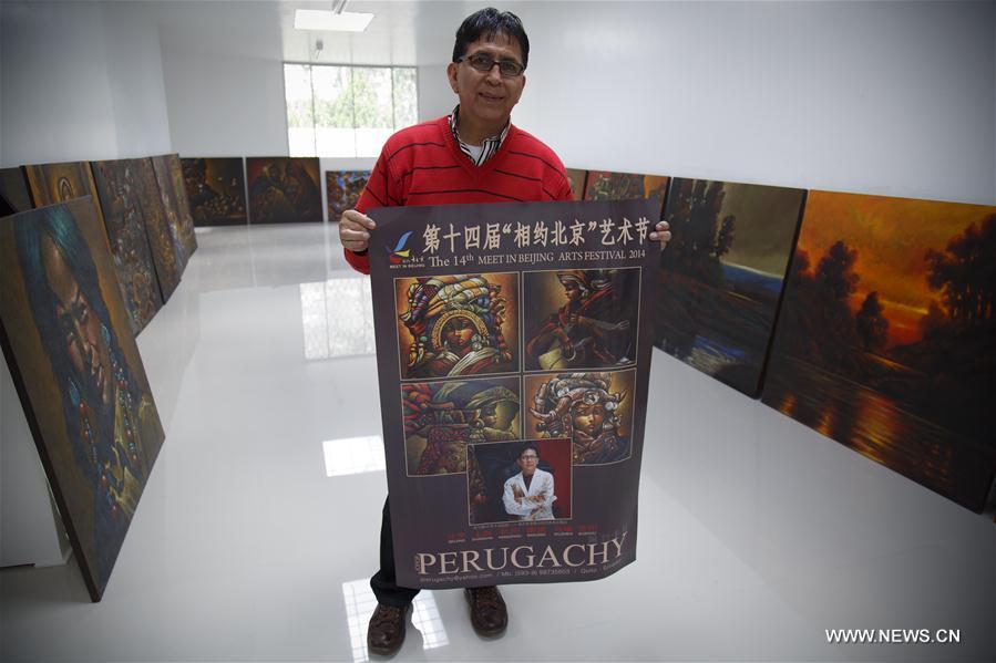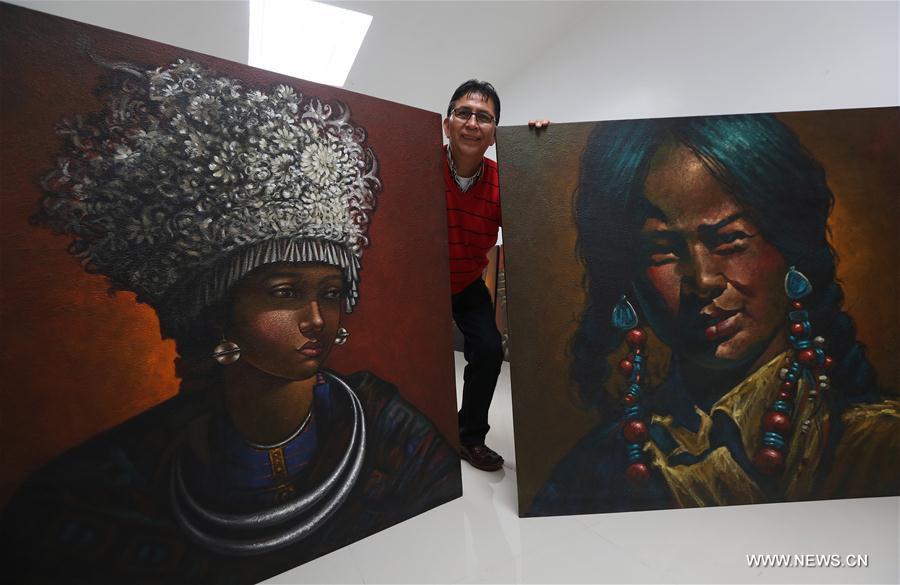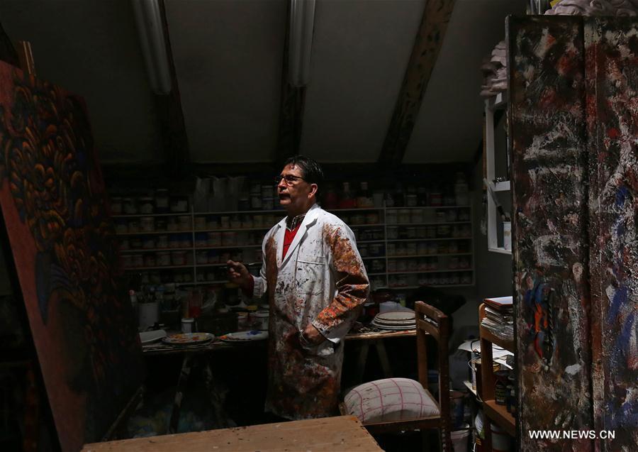 Ecuadorian painter Jorge Perugachy works in his studio in Quito, capital of Ecuador, on Oct. 22, 2016. Renowned Ecuadorian painter Jorge Perugachy has spoken highly of the cultural relations between Ecuador and China, saying these two cultures share many similarities. (Photo/Xinhua)
