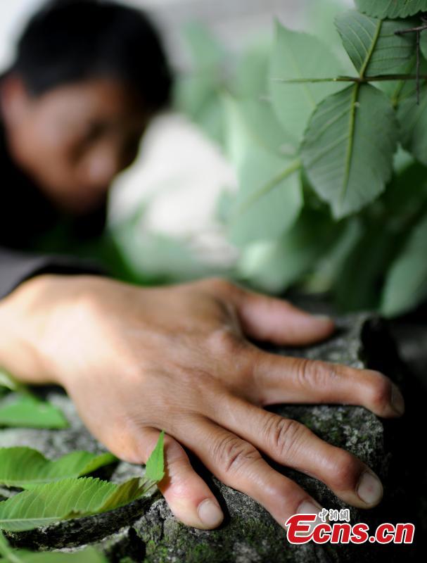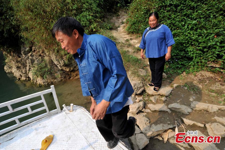 With bare hands, no safety ropes and loosely laced canvas sneakers on his feet, Huang Xiaobao, a 52-year-old villager clambers up the sheer rock face of cliffs along Getu River in Southwest China's Guizhou province. Huang, a man with one of his legs affect by polio, started to learn skills of free climbing from his father when he was only 12 years old. In the past 40 years, the man with strong arms always climbs 100 meters in search of swallow droppings to fertilize local terraced fields. The Getu River area has a long history of climbing. In the past, locals would have to scale the treacherous cliff face to collect swallow's droppings to use as fertilizer. Today however, climbing is more of an ethnic ritual, performed for tourists who stand aghast as the climbers, using their bare hands and no safety equipment, navigate a hundred meters up the walls of the caves and down again in less than 20 minutes. Six rock climbers put on "Spiderman" shows every day of the week. (Photo: China News Service/Ning Jian)