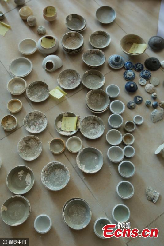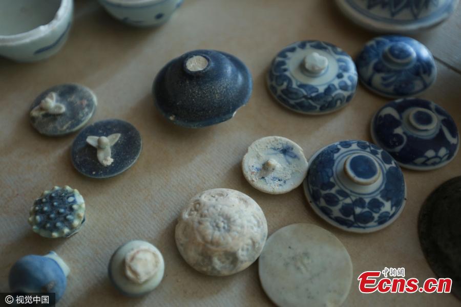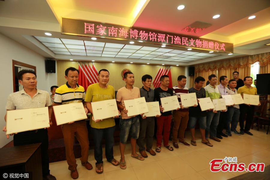 The photo taken on November 15, 2016 shows cultural relics donated to National South China Sea Museum by fishermen from Tanmen town of Qionghai, South China’s Hainan province. Over 832 historical artifacts including pottery pieces, stonewares, metal crafts, and colored glaze wares, were handed over to the museum's project office at a ceremony on Tuesday. The museum to open next year will document China's long history with the sea and islands.(Photo/CFP)