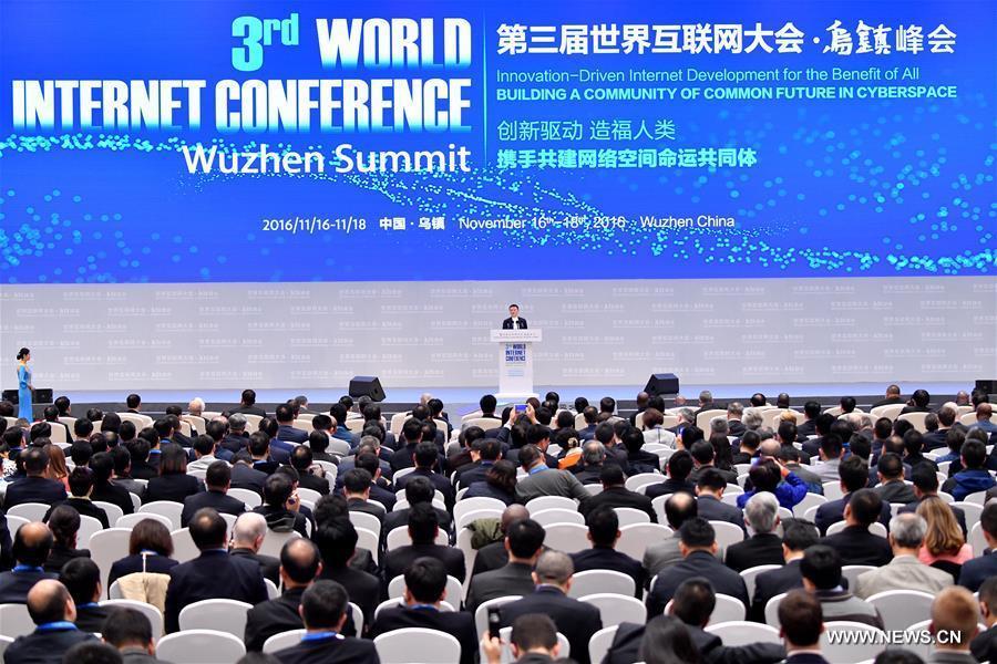 Chinese President Xi Jinping gives a speech via video at the opening ceremony of the third World Internet Conference (WIC) in Wuzhen, east China's Zhejiang Province, Nov. 16, 2016. (Photo/Xinhua)