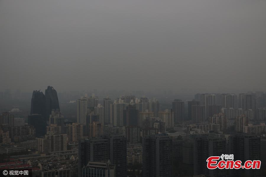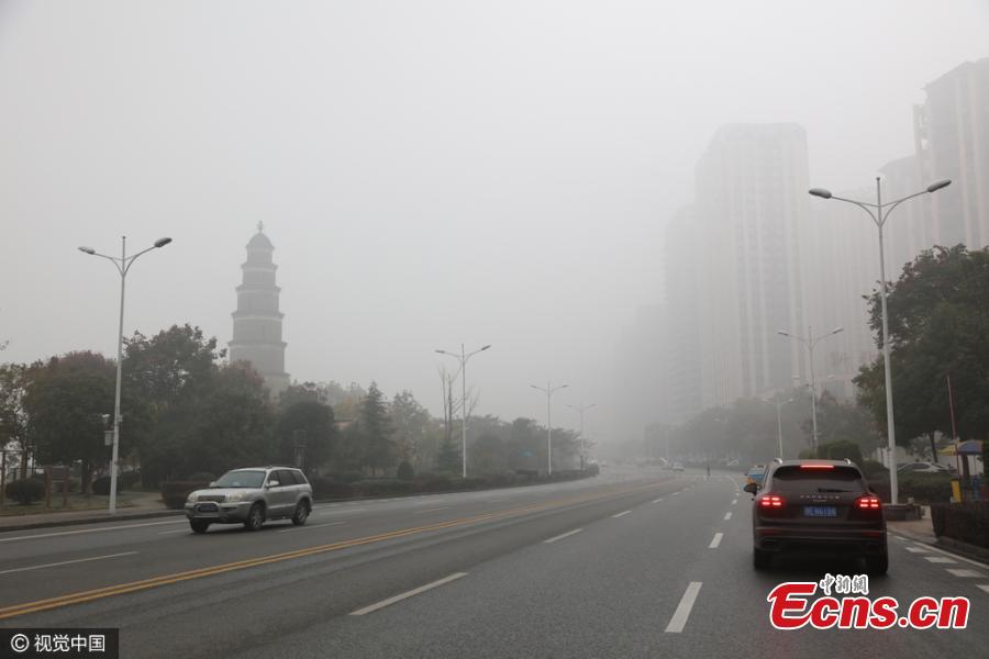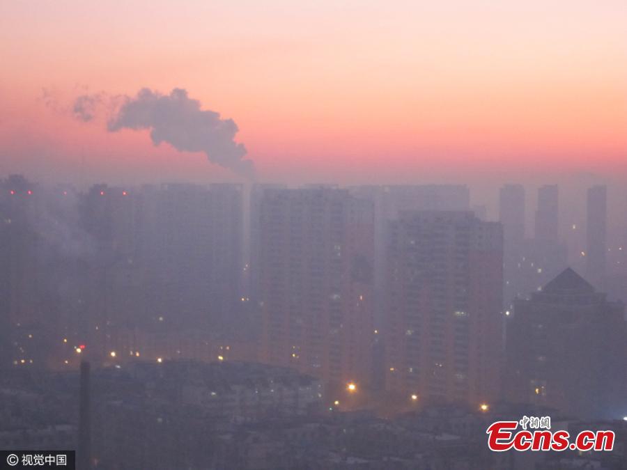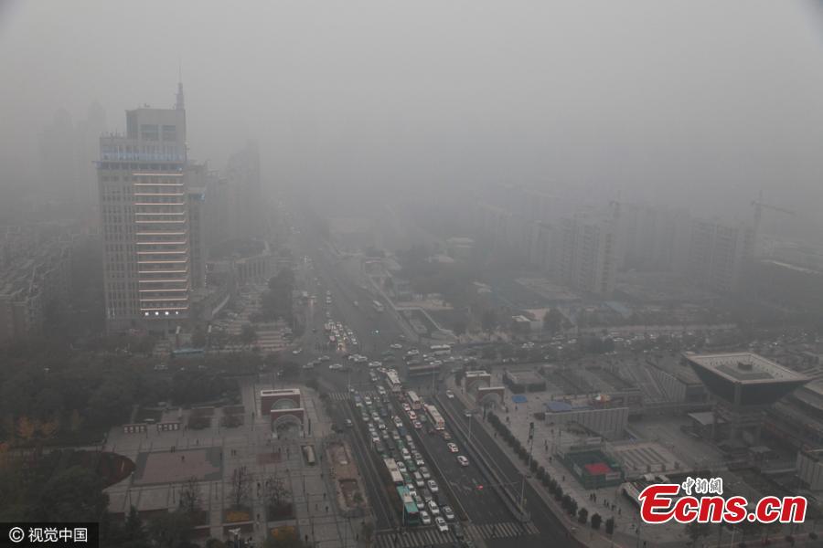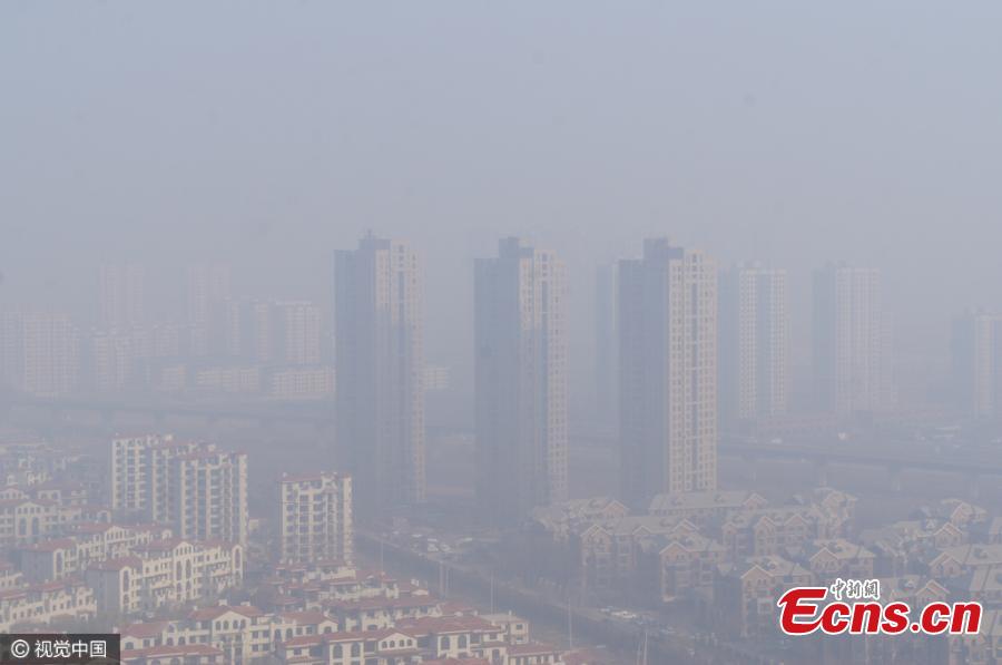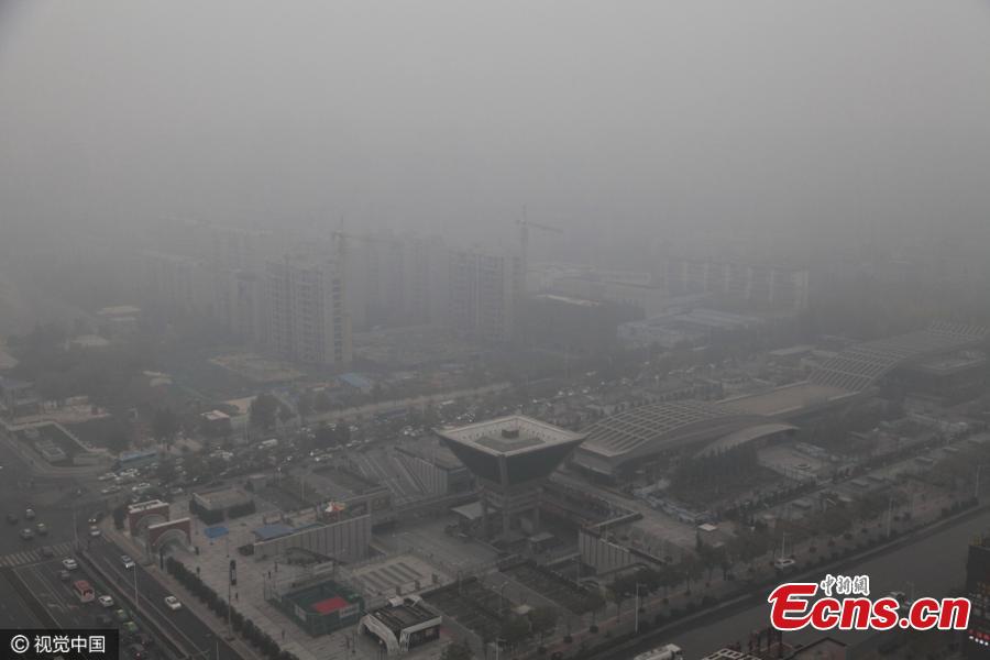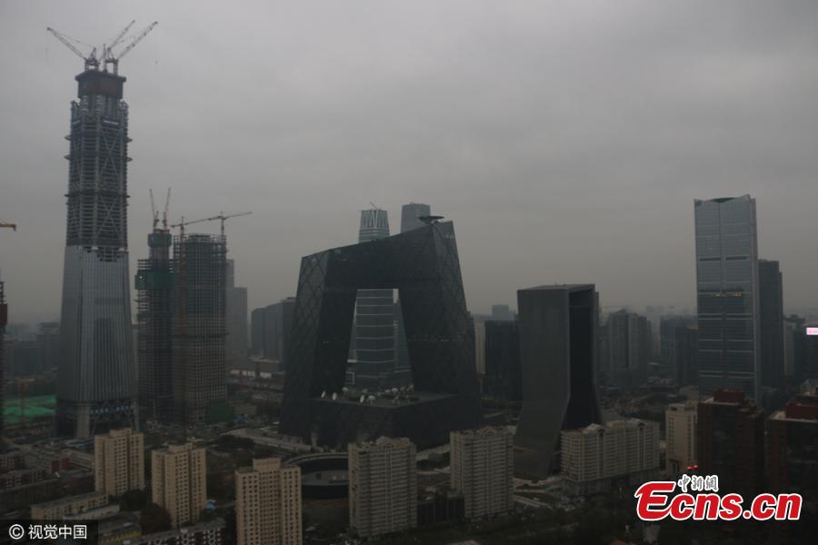 Buildings are shrouded in smog in Beijing, capital of China on November 17, 2016. Beijing and its adjacent area have issued an orange alert for heavy air pollution as smog looks set to linger for the next three days. The orange alert, the second highest in the four-tier warning system, will be effective from midnight Wednesday in Beijing. The capital is forecast to see serious air pollution from Thursday to Saturday.(Photo/CFP)