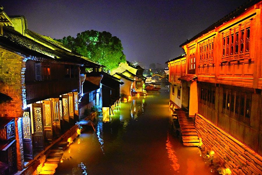 A photo taken on Nov. 16 depicts a night view of Wuzhen, Zhejiang Province. The third World Internet Conference is held at the ancient town from Nov. 16 to 18. (Photo/China Daily)
