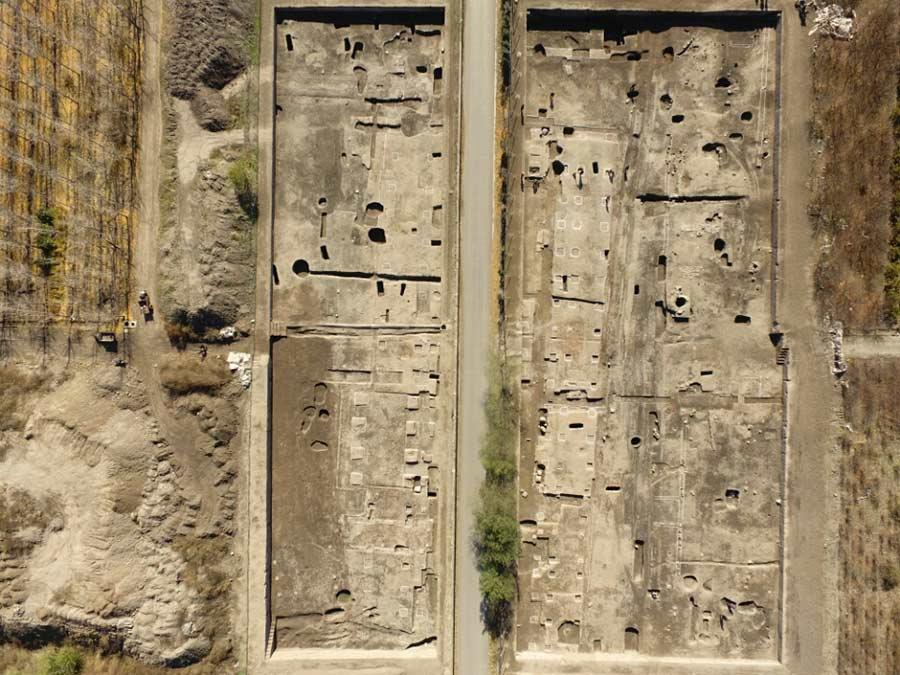 An aerial photograph offers a bird's eye view of the No 2 architectural complex ruin in Jinyang ancient city, Shanxi province. (Photo/For China Daily)