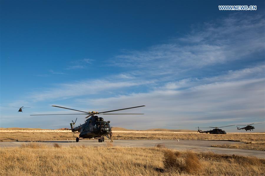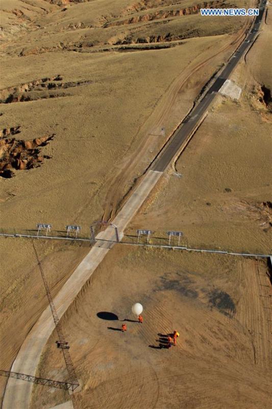 Meteorological staff members launch a weather balloon at the landing area for Shenzhou-11 spacecraft, north China's Inner Mongolia Autonomous Region, Nov. 16, 2016. The spacecraft Shenzhou-11, which is carrying taikonauts Jing Haipeng and Chen Dong, separated from the orbiting Tiangong-2 space lab. The separation marks the beginning of the journey home for the two men, who have lived and worked in Tiangong-2 for 30 days. (Photo/Xinhua)