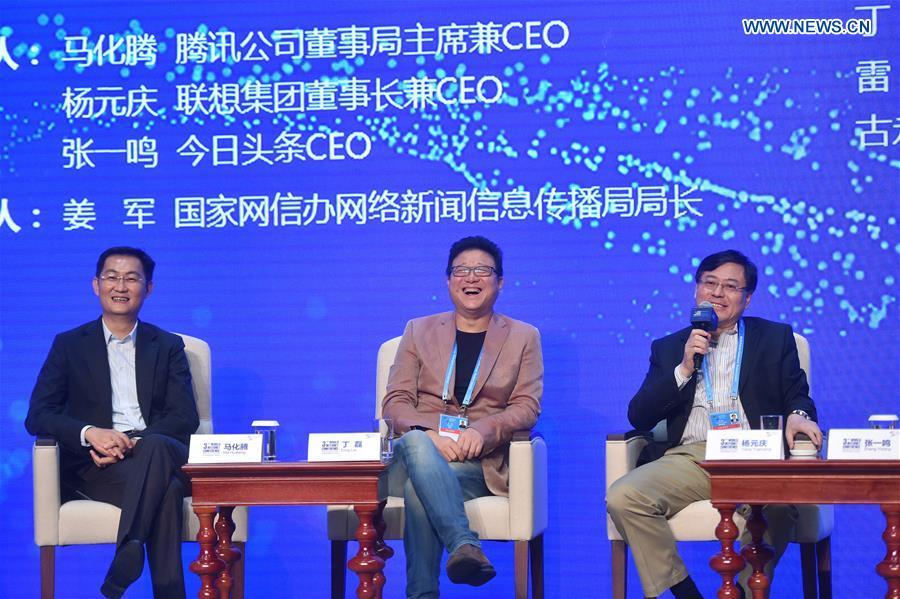 Lei Jun (L), chairman and CEO of Chinese smartphone maker Xiaomi, and Zhou Hongyi, chairman and CEO of Qihoo 360, attend the 3rd World Internet Conference in Wuzhen, east China's Zhejiang Province, Nov. 16, 2016. (Photo/Xinhua)