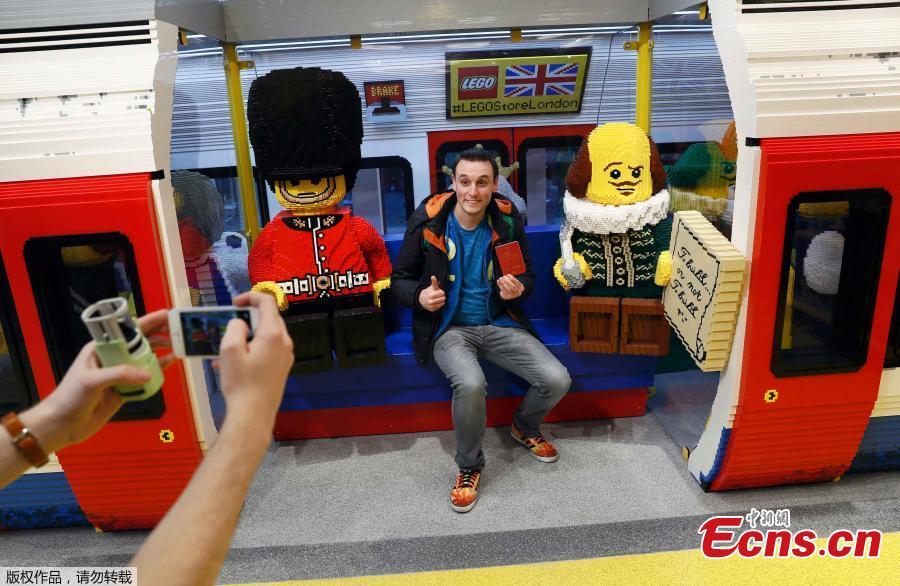 A man poses for a photograph in a Tube carriage made with Lego in the world's biggest Lego store in Leicester Square in London, Britain November 17, 2016. (Photo/Agencies)