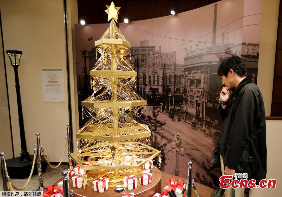 A gold Christmas tree decorated with 19-kilograms of pure gold wires, is displayed for sale for two hundred million yen ($1.8 million dollars) at the Ginza Tanaka store in Tokyo, Japan, November 21, 2016. (Photo/Agencies)