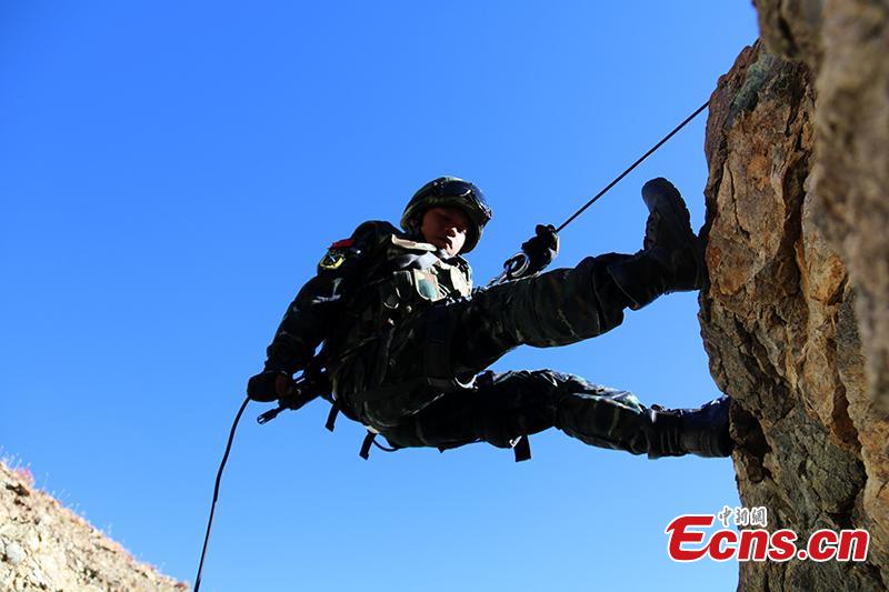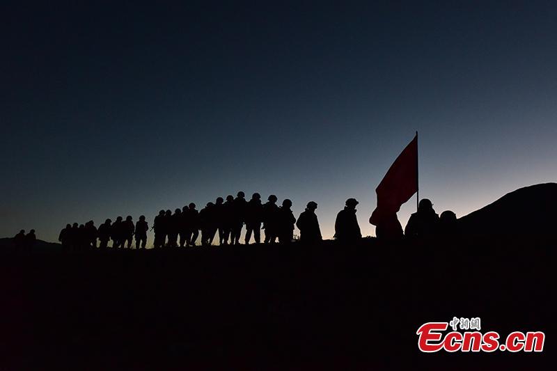 Soldiers of a frontier defense battalion participate in three-day training on a plateau with average altitude of around 4,200 meters in Southwest China's Tibet autonomous region on November 22, 2016. (Photo provided to China News Service)