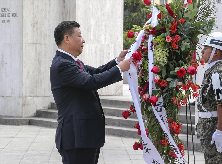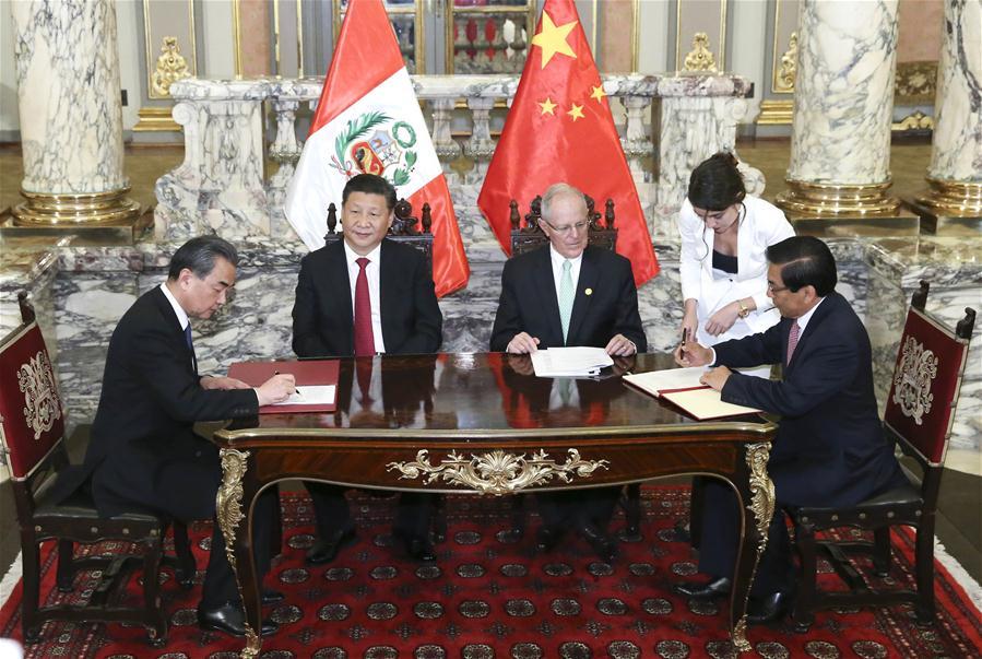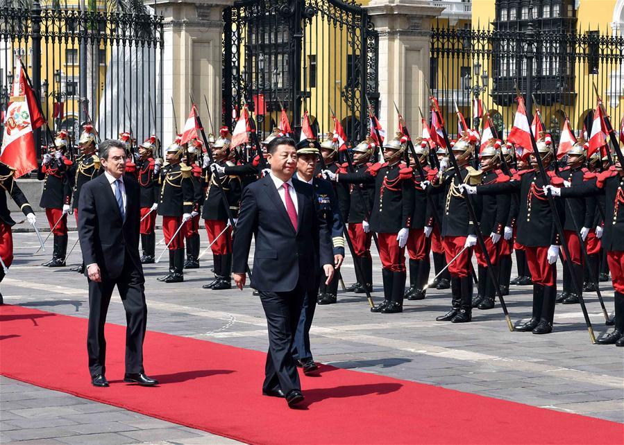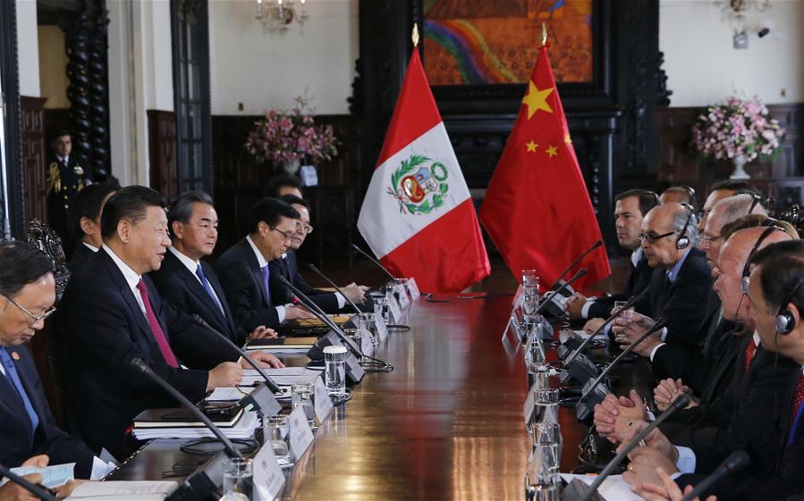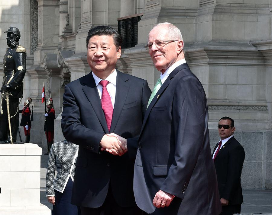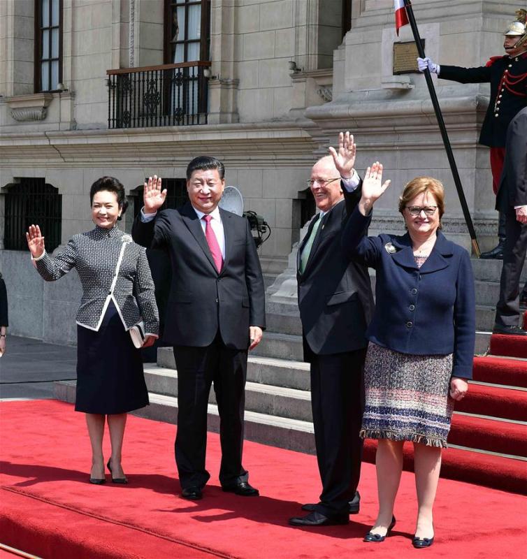 Chinese President Xi Jinping and his wife Peng Liyuan, and Peruvian President Pedro Pablo Kuczynski and his wife Nancy Lange view an exhibition of 121 selected pieces of Chinese treasures spanning over its 5,000 years of civilization after the closing ceremony of the China-Latin America and Caribbean 2016 Year of Culture Exchange in Lima, capital of Peru, Nov. 21, 2016. (Photo/Xinhua)