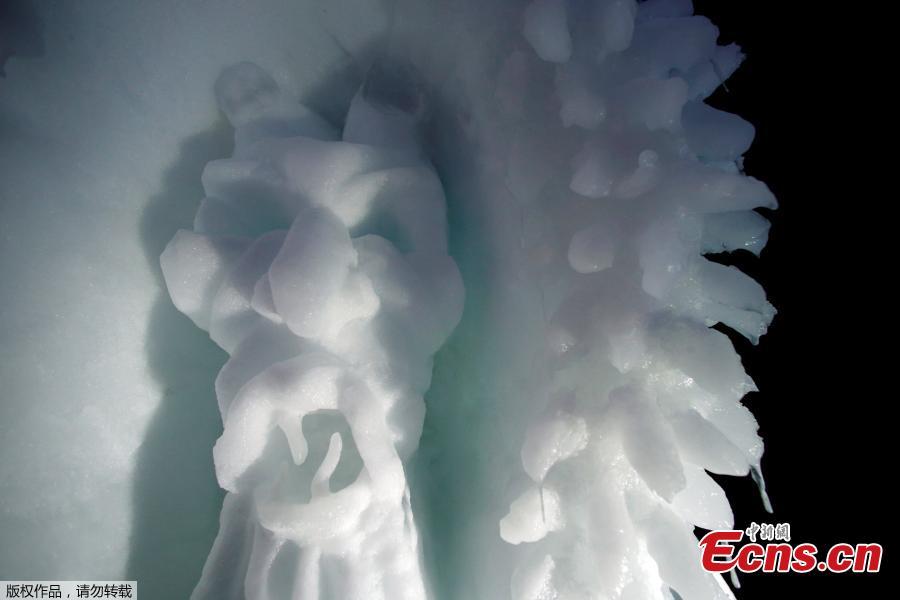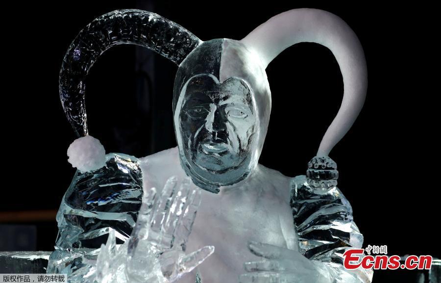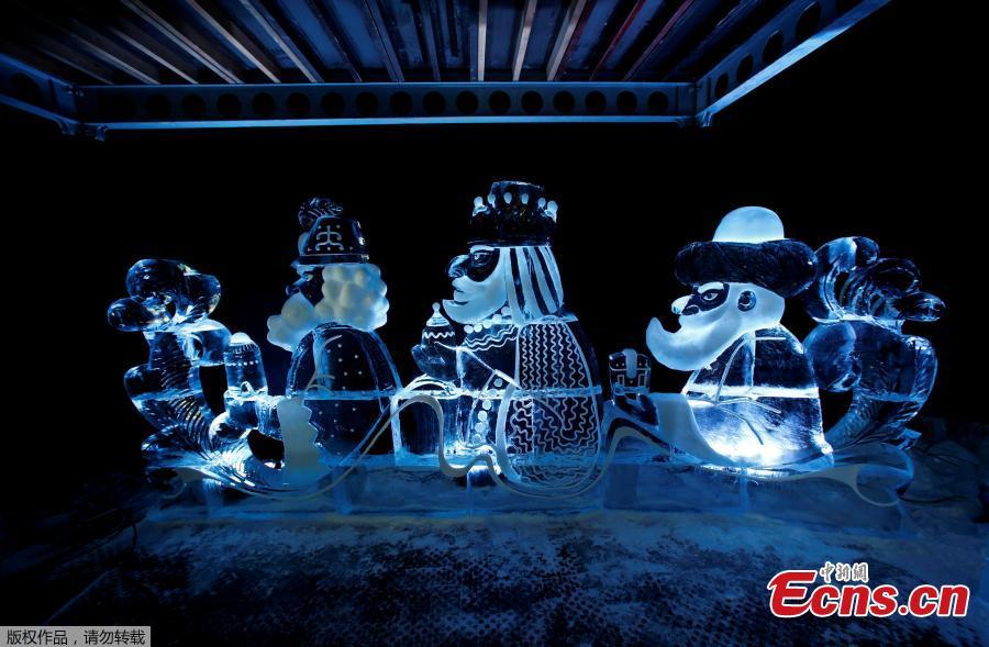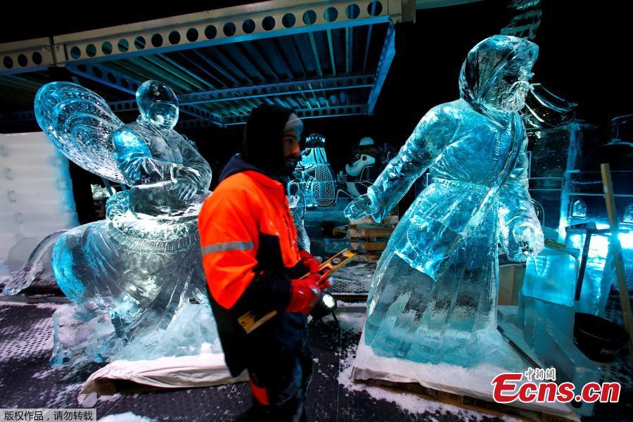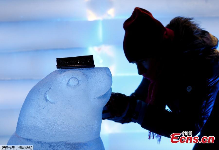 A sculptor carves a sculpture depicting a seal at the Snow and Ice Sculpture Festival "Eiswelt Mainz" in Mainz, Germany, November 22, 2016.(Photo/Agencies)