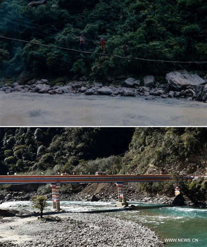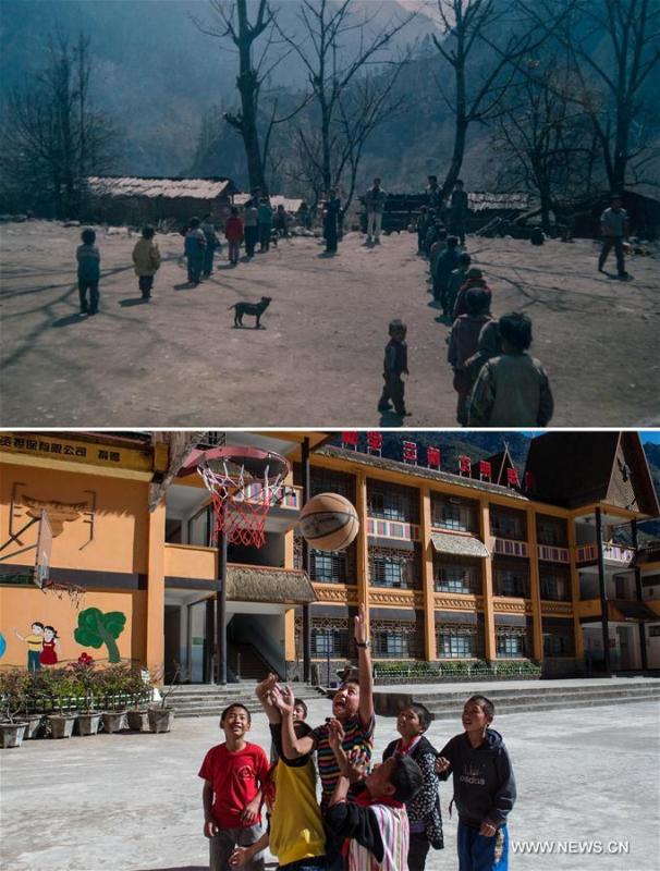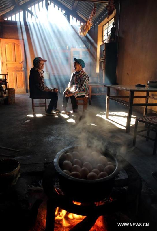 File photo taken in the 1950s shows the life of people in Dulongjiang Township of Dulong and Nu Autonomous County of Gongshan, southwest China's Yunnan Province. Dulongjiang Township is home to people of Dulong ethnic group. Due to abominable natural conditions, the local economy was undeveloped in the past. After years of development, roads have been paved and modern dwelling houses built to replace thatch-covered houses. The rural medical insurance has covered 98 percent of the villagers and all school-age children have received education at school. The average earnings per year of a resident rose from less than 900 RMB (130 U.S. dollars) some 10 years ago to 3,503 RMB (506 U.S. dollars) in 2015. (Photo/Xinhua)