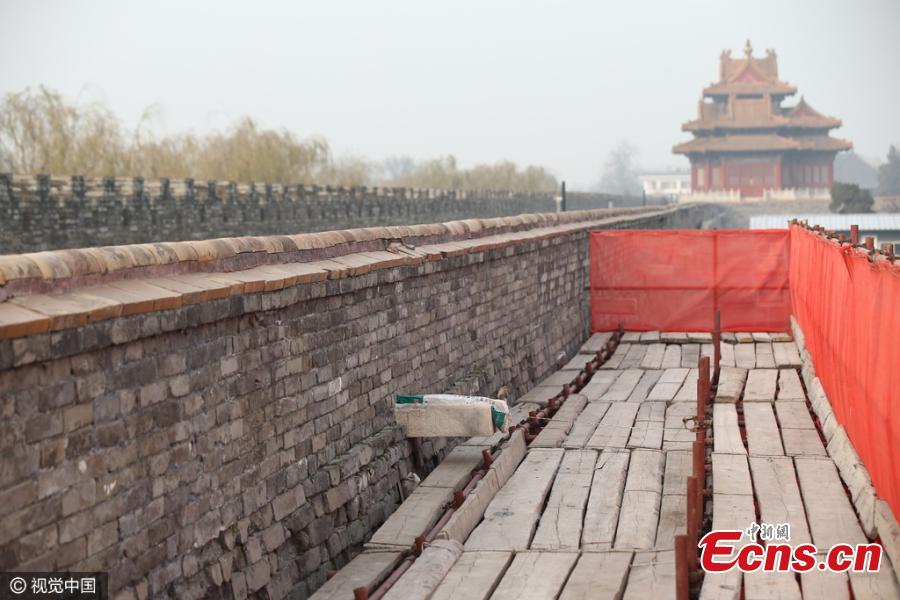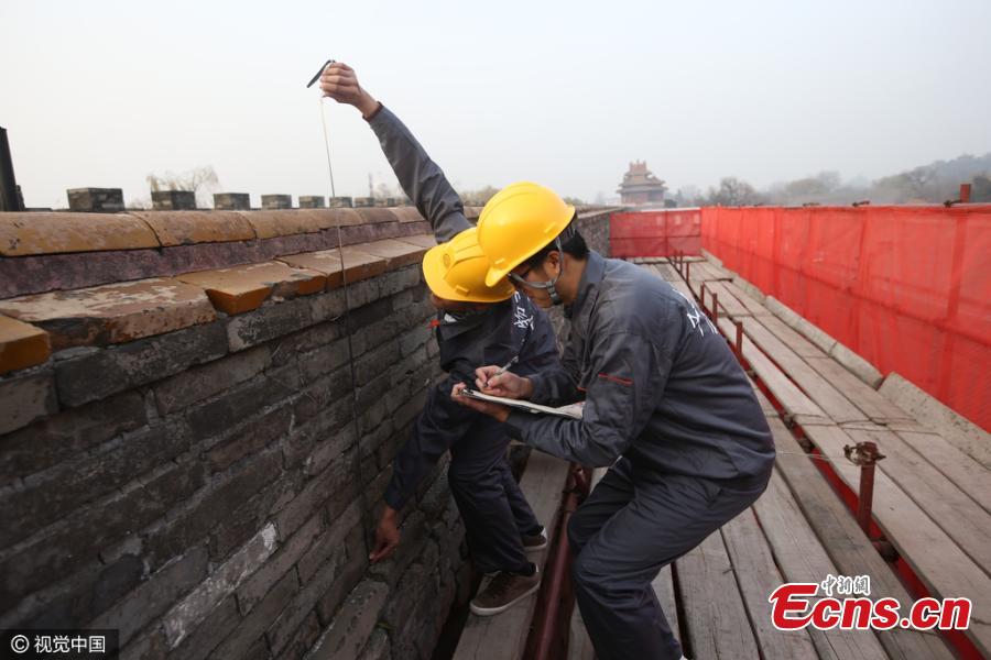 A major restoration project to protect the walls of the Palace Museum in Beijing, also known as the Forbidden City, begins on November 26, 2016, which aims to fix the diseases of "old age" that threaten the 600-year-old imperial structure. It is the biggest restoration project at the museum since 1949. The first phase has already begun on a 233-meter section of the wall at the western end of the complex named Xihuamen, which is the part most affected. (Photo/CFP)
