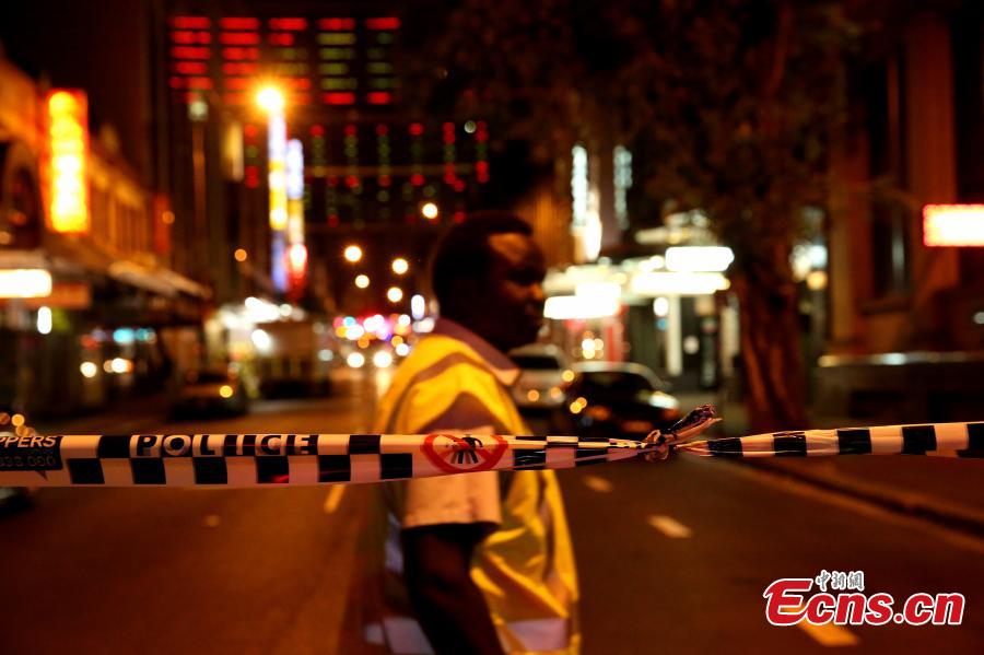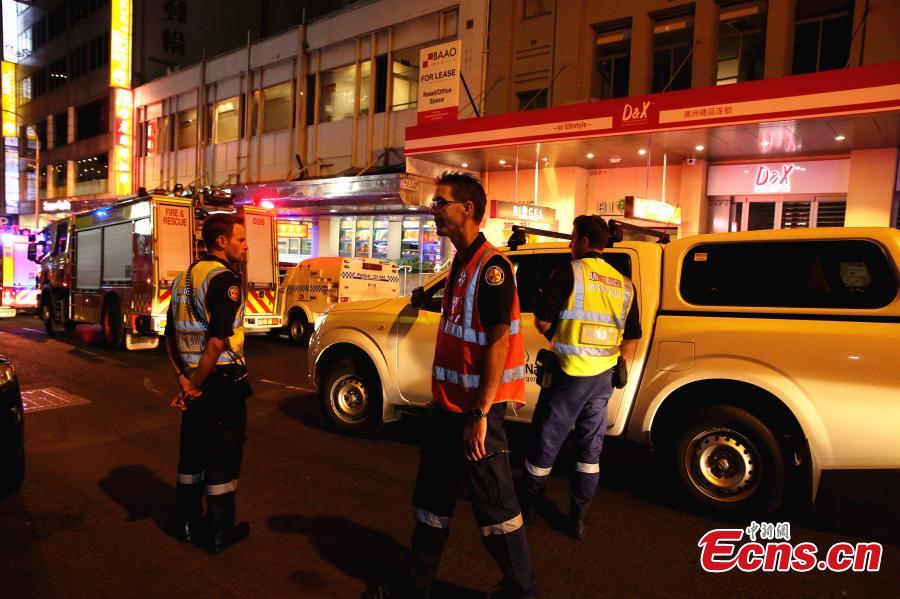 People are evacuated from Sydney's Chinatown after a gas explosion on November 29, 2016. 16 people including two children were injured when a gas explosion blew out a shutter door from the loading dock of a food court in Sydney's Chinatown at about 7:30 p.m. on Tuesday. The blast, caused by a leak from a gas main, occurred at Dixon House on the corner of Little Hay Street and Sussex Street.(Photo: China News Service/Lai Hailong)