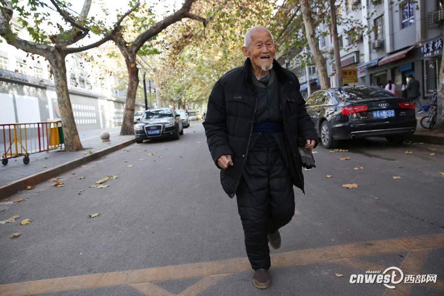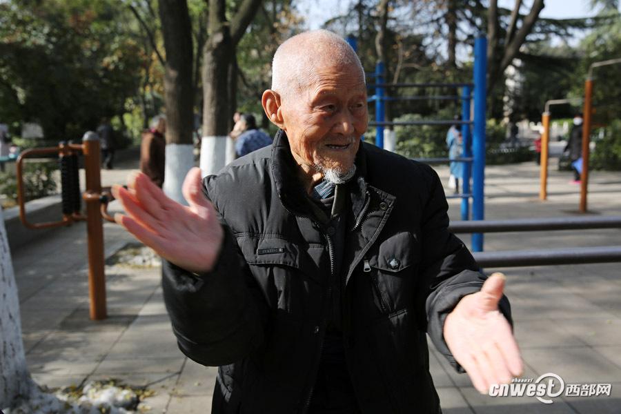 Yang Maolin, 101, is regarded as the oldest healthy man in Xi'an, Shaanxi province. Yang, who used to live in the countryside, moved to Xi'an to be with his children when his wife passed away three years ago. Yang has a habit of exercising regularly. He often goes to Xi'an Revolution Park when the weather is good. In addition to walking, running, jumping and using the park's exercise equipment, the elderly man also enjoys chatting with people. Yang is always happy to share his secrets to longevity and good health: "Eat what you have, keep an open mind and exercise."