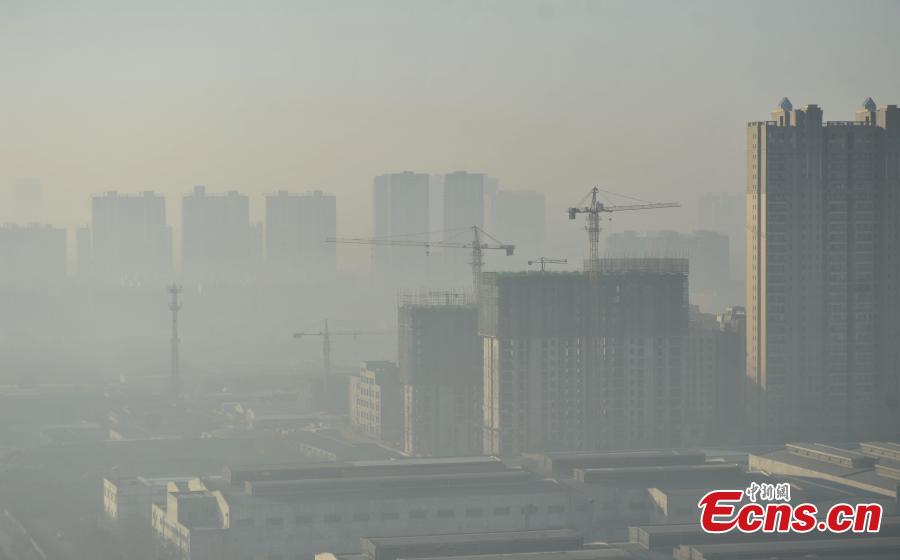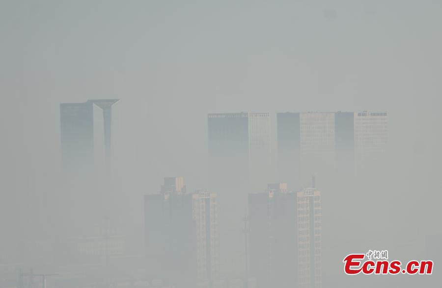 Buildings in Shijiazhuang, North China’s Hebei province are shrouded in smog on Thursday morning, December 1, 2016. Authorities in the province on Wednesday issued an air pollution red alert for heavy smog, the first high-level warning issued by the province this year. According to the authorities, the smog will hit the province from Dec. 2 to 4. Most cities in the province's central and southern regions are placed under red alert. (Photo: China News Service/Zhai Yujia)