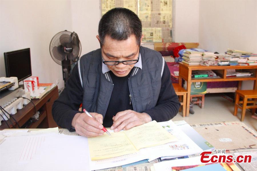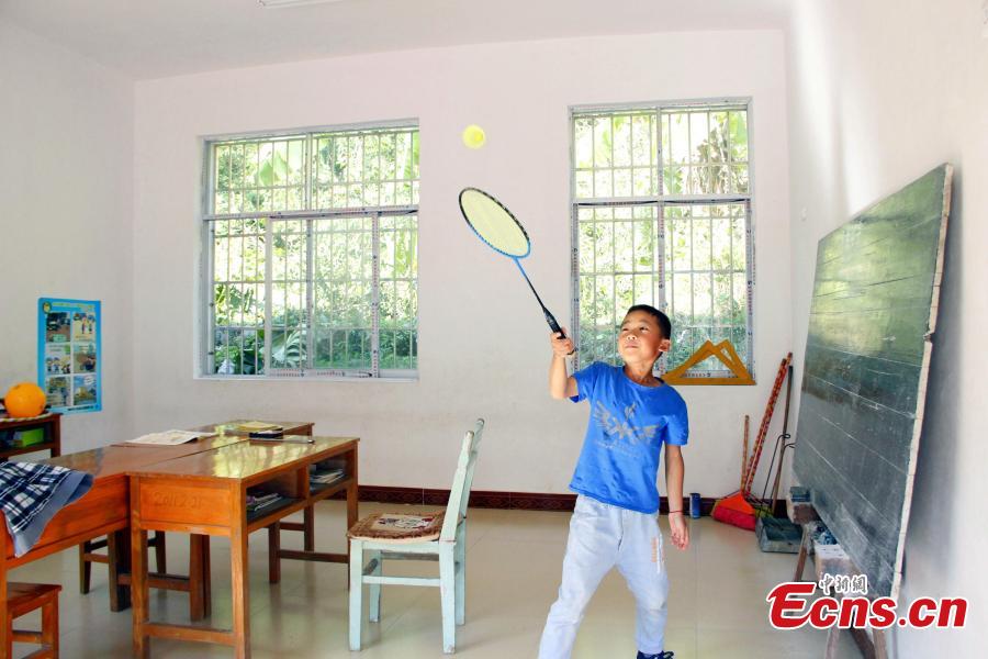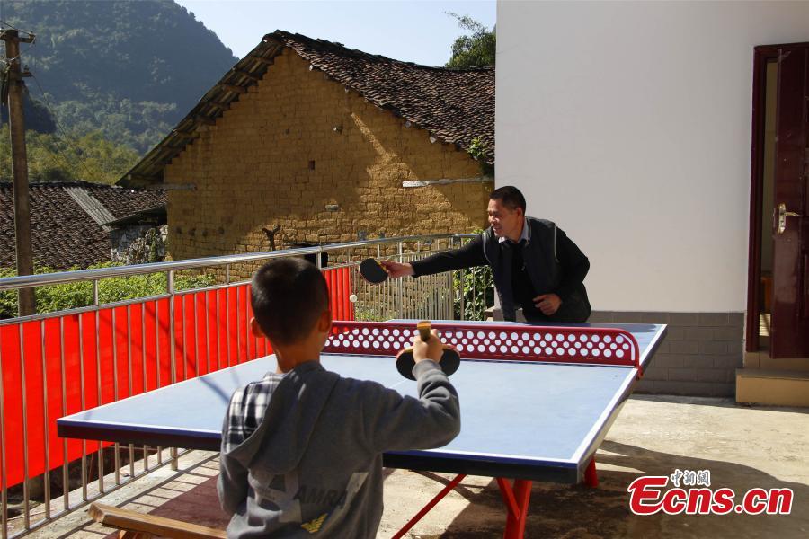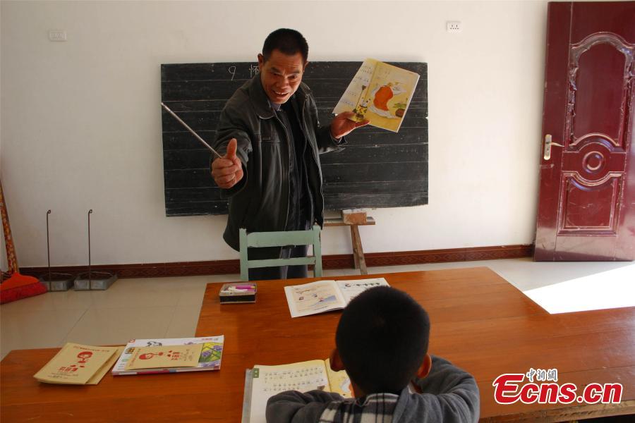 Pan Shanji gives a lesson to Li Jianwen in Dayandong Primary School in Liucheng county, South China's Guangxi Zhuang autonomous region on December 1, 2016. (Photo: China News Service/Zhu Liurong)
