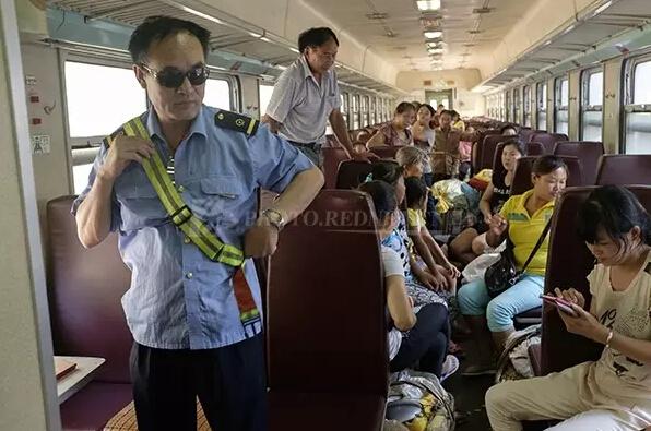 It is the most "special" train on the Beijing-Guangzhou railway line. In addition to a locomotive, the train has only two carriages. Dubbed as "vegetable farmer train", it offers free-riding service to local vegetable and fruit farmers. A farmer who takes the train as commuting could save about 2,000- 3,000 yuan per year. (Photo/rednet.cn)