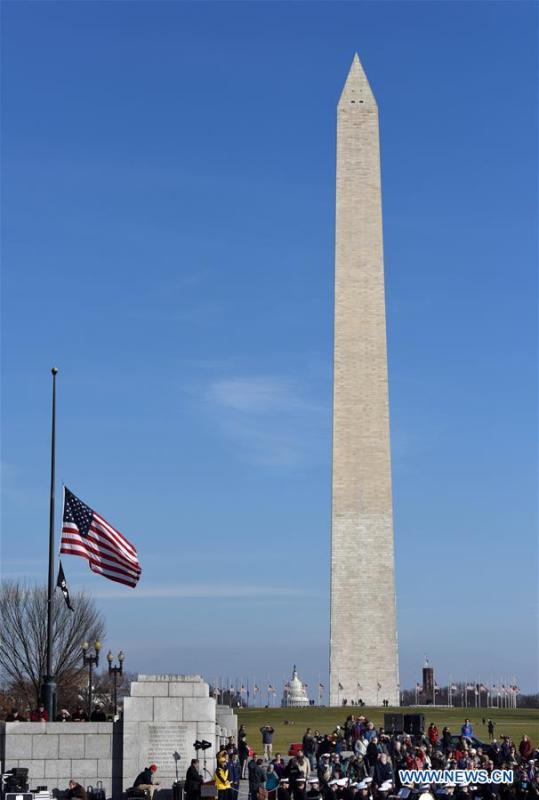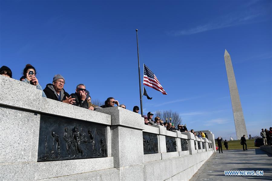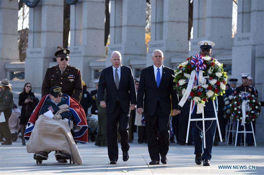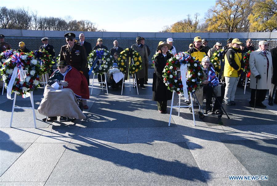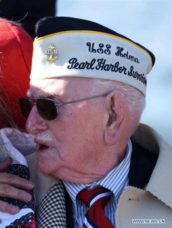 Pearl Harbor survivor veterans attend the 75th anniversary commemoration of Pearl Harbor attack, at the National World War II Memorial in Washington D.C., the United States, Dec. 7, 2016. (Photo/Xinhua)