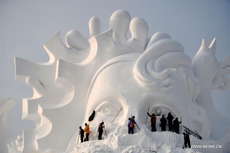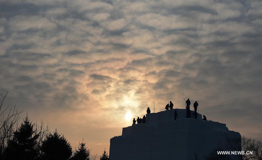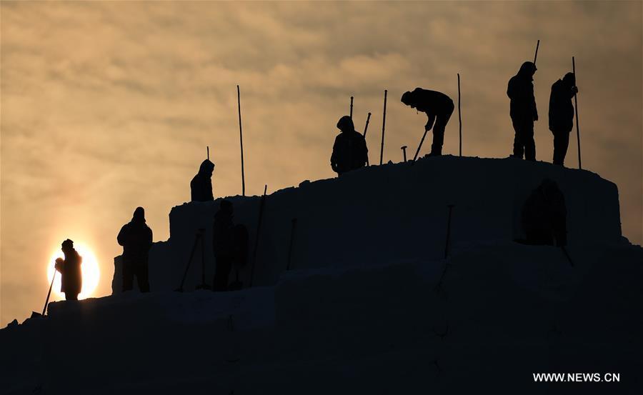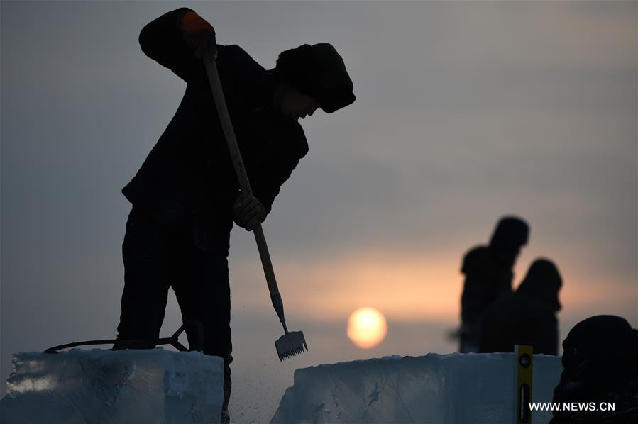 Artists create an ice building at Harbin Ice and Snow World in Harbin, capital of northeast China's Heilongjiang Province, Dec. 9, 2016. (Xinhua/Wang Jianwei)