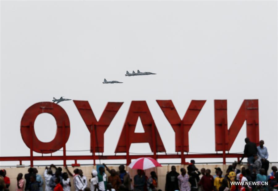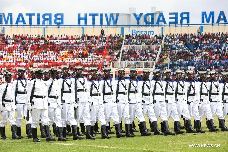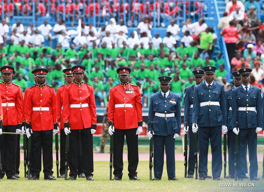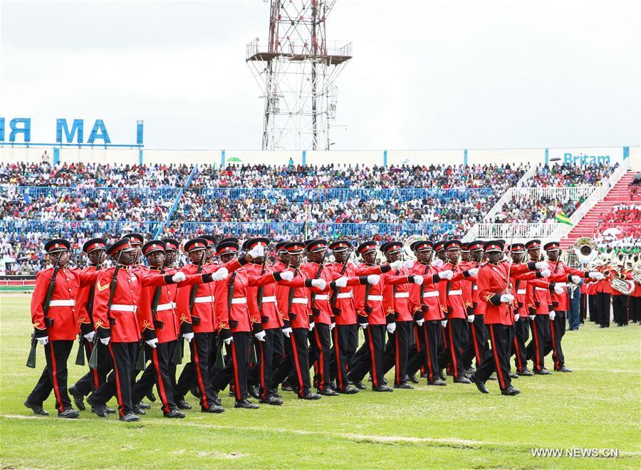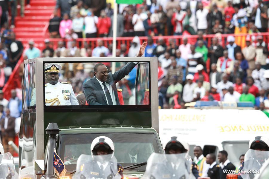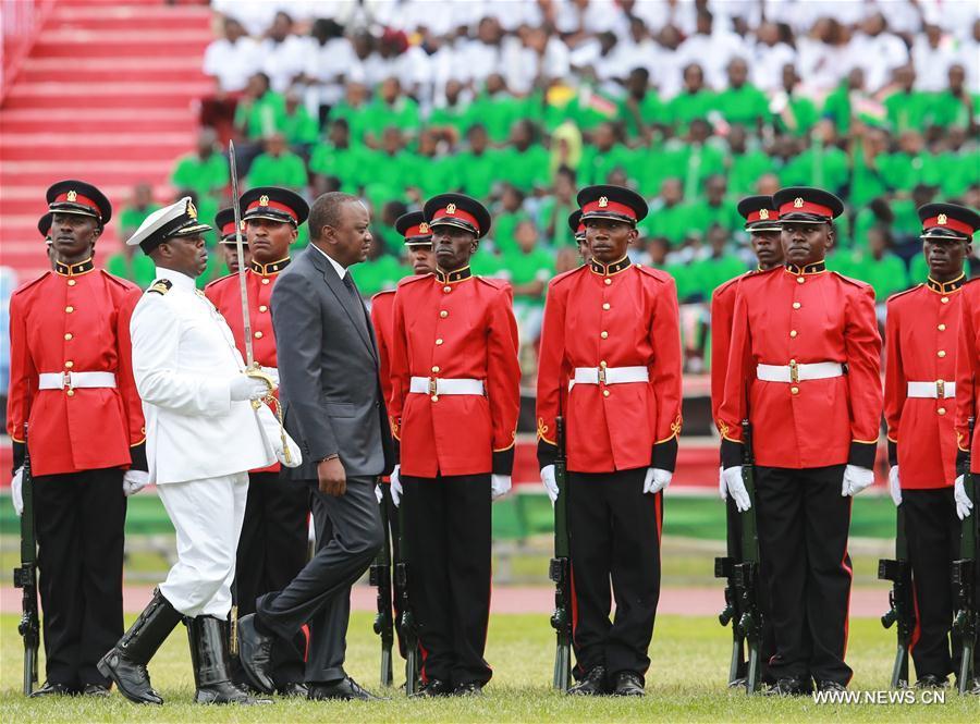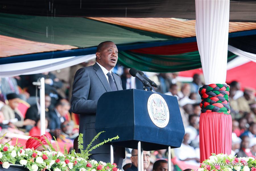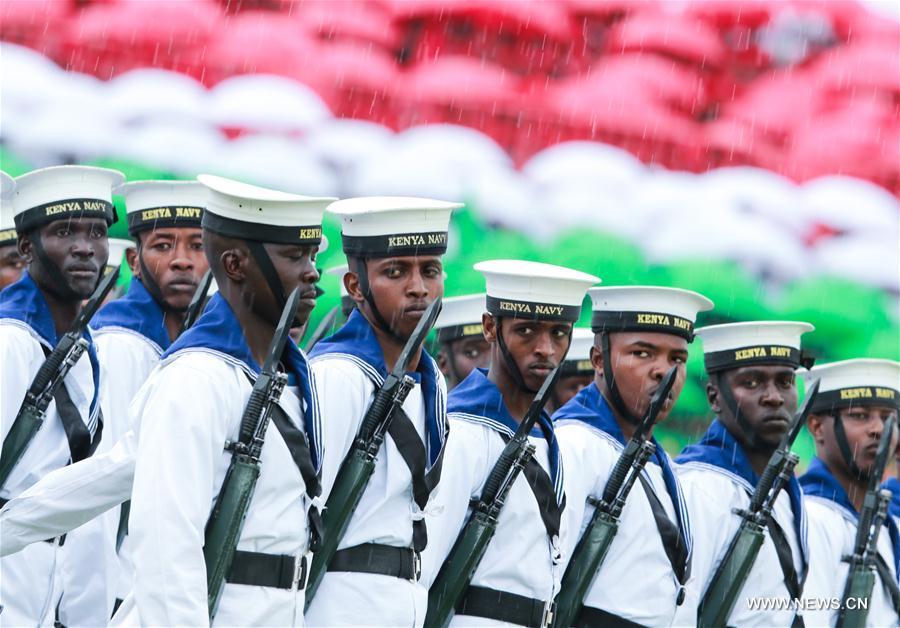 Kenyan President Uhuru Kenyatta (Front R) inspects the Kenya Defense Force during the celebrations to mark the 53rd anniversary of the nation's independence at Nyayo National Stadium in Nairobi, Kenya, Dec. 12, 2016. (Photo:Xinhua/Pan Siwei)