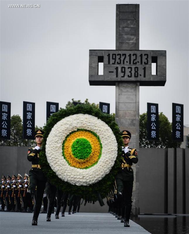 Photo taken on Dec. 13, 2016 shows the scene of state memorial ceremony for China's National Memorial Day for Nanjing Massacre Victims at the memorial hall for the massacre victims in Nanjing, east China's Jiangsu Province. (Photo:Xinhua/Ji Chunpeng)