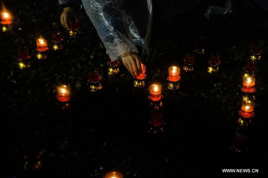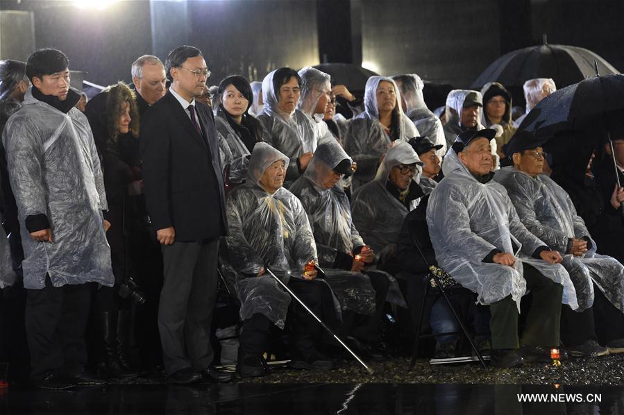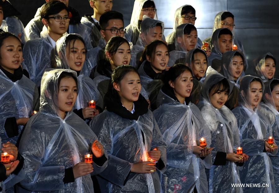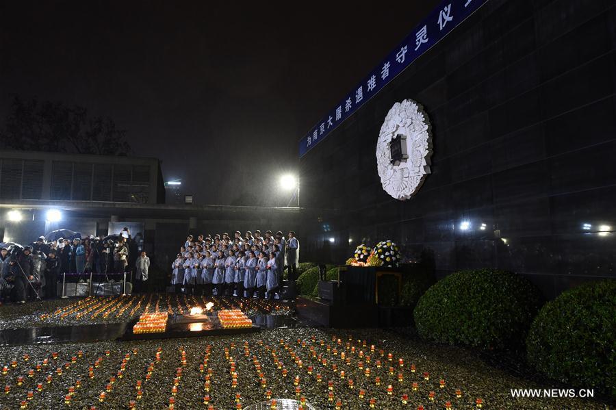 Photo taken on Dec. 13, 2016 shows the scene of a candlelight vigil for China's National Memorial Day for Nanjing Massacre Victims at the memorial hall for the massacre victims in Nanjing, east China's Jiangsu Province. (Photo:Xinhua/Sun Can)
