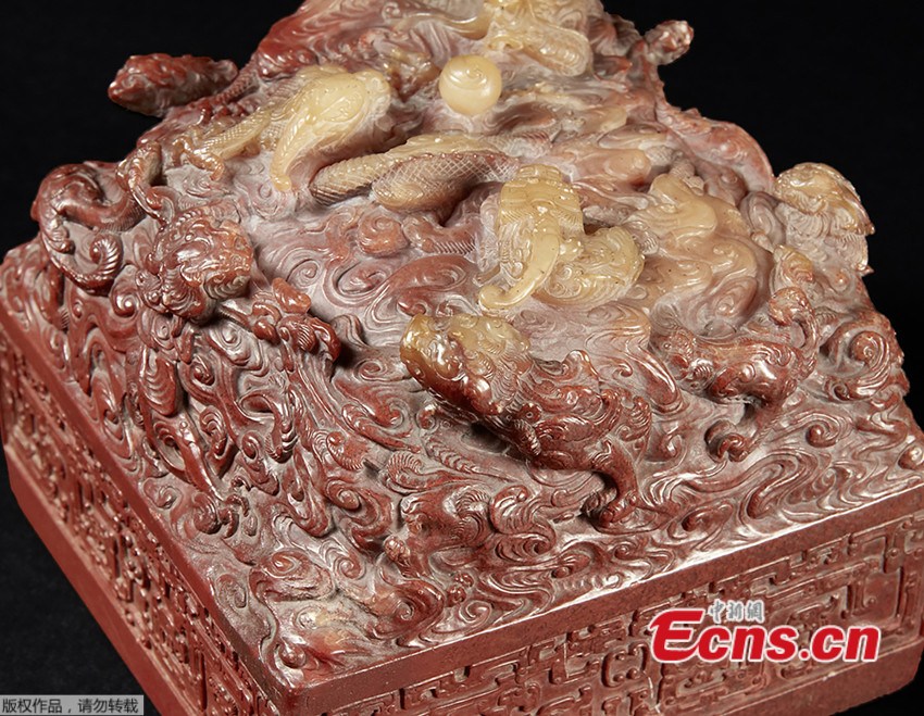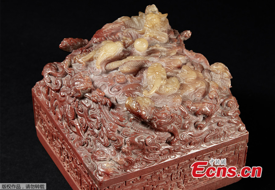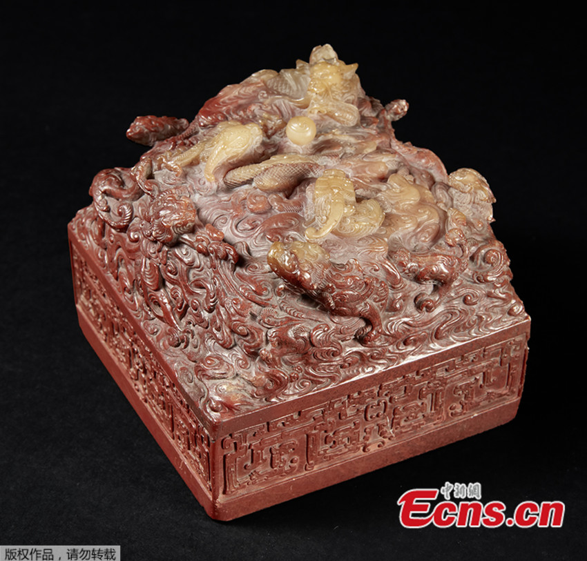 The picture taken in November 2016 and released on December 14, 2016 by Pierre Berge and Associes and Drouot shows a Chinese imperial seal of the Qianlong era before its auction at the Hotel Drouot. A Chinese imperial seal of the Qianlong era (1736-1795) was bought for 22 million U.S. dollars on December 14, 2016 by a Chinese collector during an auction in Paris, 20 times its estimate. (Photo/Agencies)