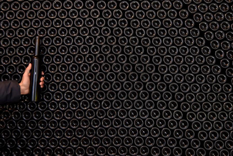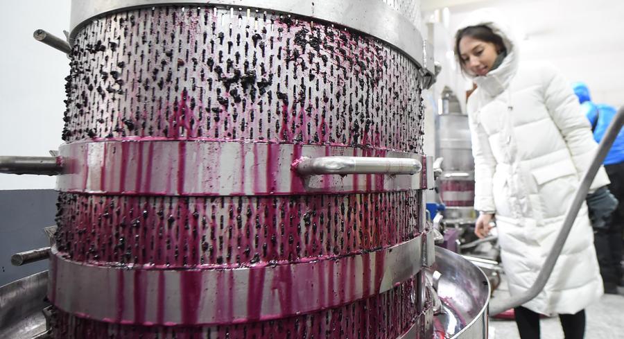 A journalist takes photos of the frozen grapes in Ji'an of Tonghua city, Northeast China's Jilin Province, Dec. 7, 2016. As a dessert wine, the ice wine is produced from frozen grapes. In recent years, local government of Ji'an encouraged the research and development of ice wine industry. The growing area of the special grapes has exceeded 330 hectares and local yearly production of the ice wine reaches 500 tons. The Ji'an ice wine has become an example of the Chinese ice wine in global market. (Photo/Xinhua)