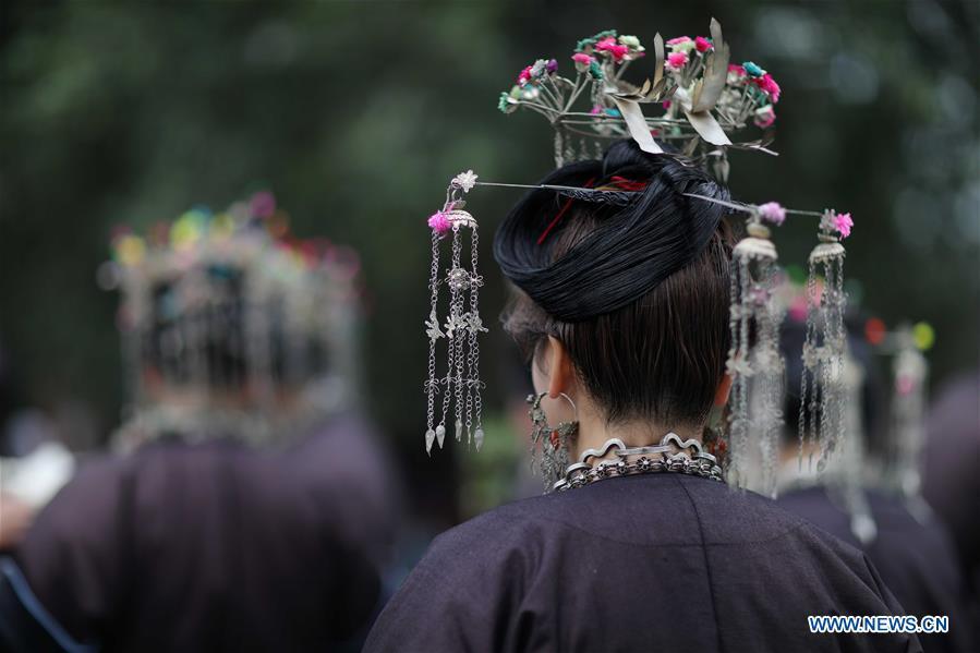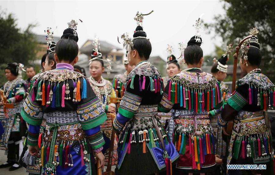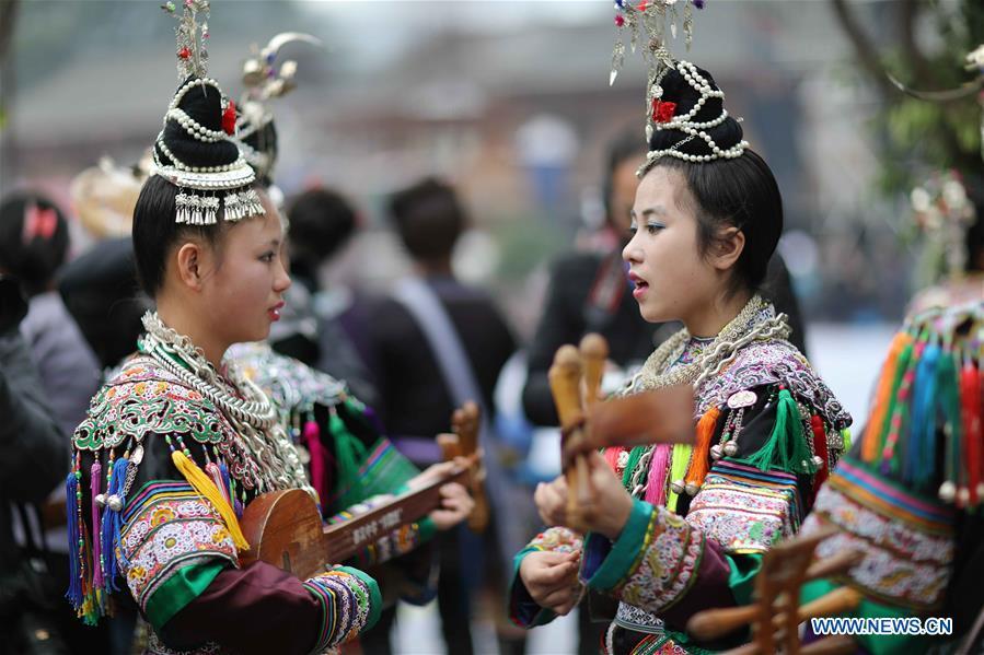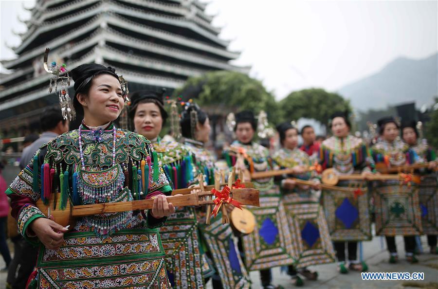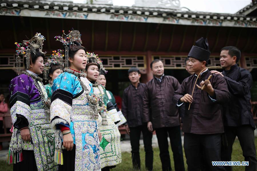 People of the Dong ethnic group take part in activities during the Sama Festival in Rongjiang County, southwest China's Guizhou Province, Dec. 18, 2016. Sama was the name of a heroine in ancient maternal society of Dong people and the Sama Festival, held to commemorate the ancestor, also has the history for a thousand years. (Photo:Xinhua/Huang Xiaohai)