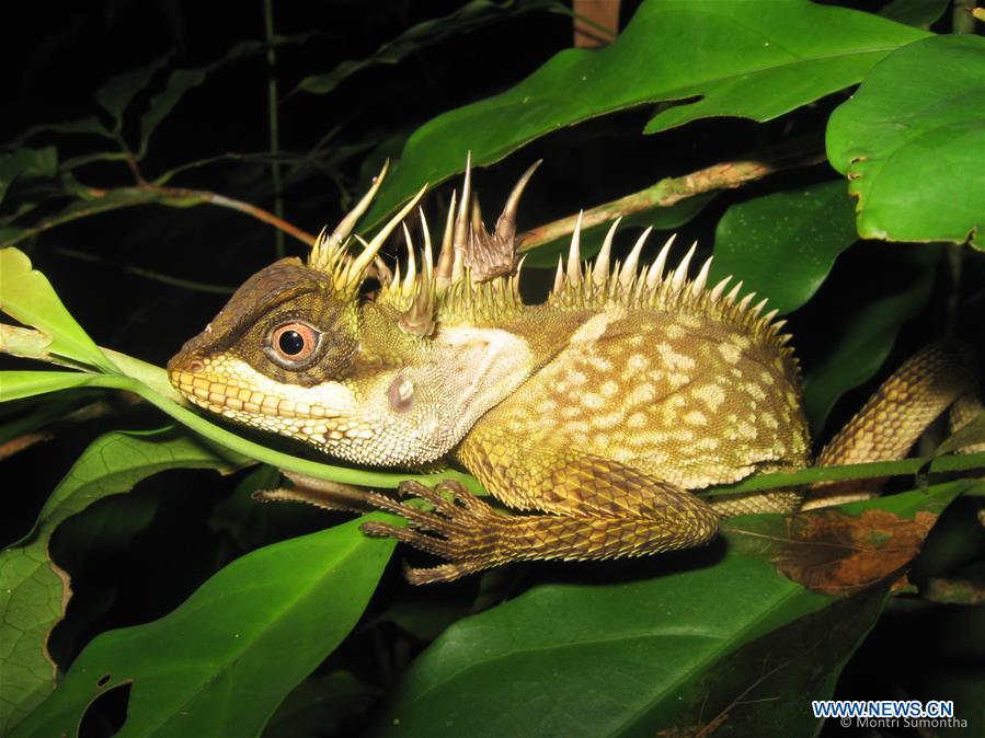 Photo released by the World Wildlife Fund (WWF) on Dec. 19, 2016 shows a new species of lizard in Phuket, Thailand. A rainbow-headed snake, a dragon-like lizard, a newt and a tiny frog are just four of the 163 new species discovered in the Greater Mekong region last year, the WWF said in a statement Monday. (Photo: Xinhua/Montri Sumontha at WWF)