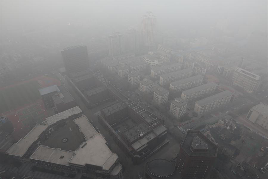 Photo taken on Dec. 19, 2016 shows the city view of Beijing shrouded in smog in the capital of China. Severe smog continued to shroud northern China and even worsened late Monday, disrupting life in dozens of cities. (Photo/Xinhua)