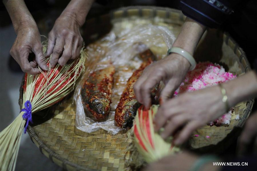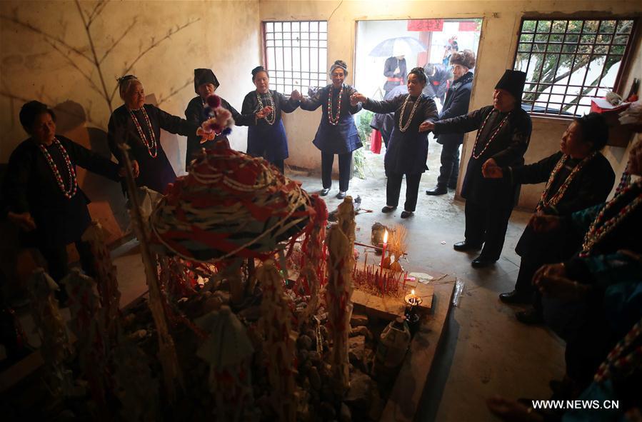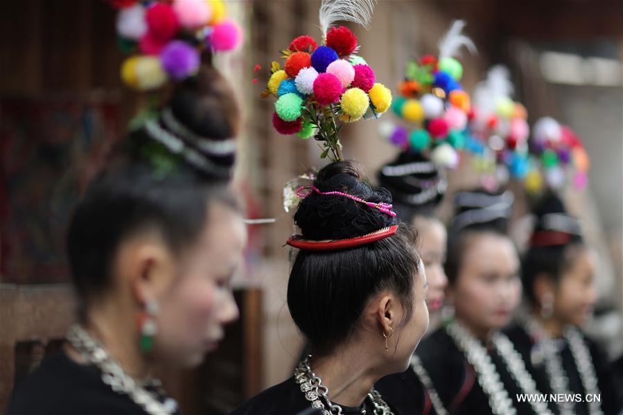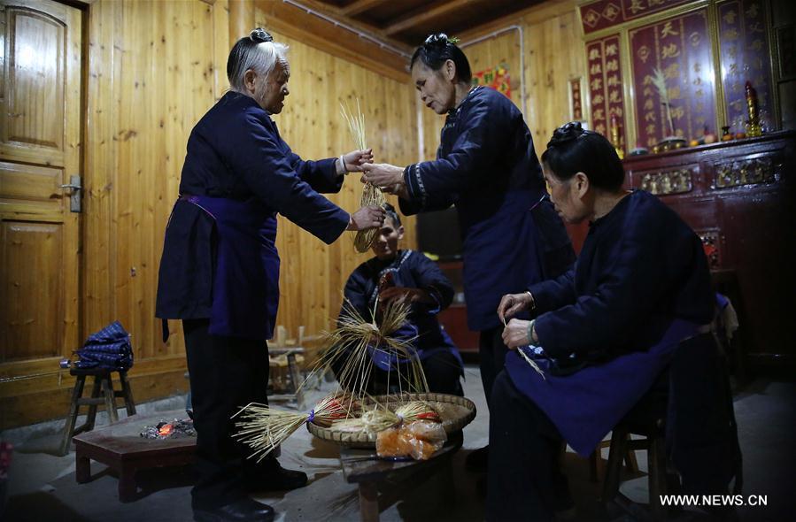 People of Dong ethnic group are seen during the Sama Festival in Sanbao Dong Village in Rongjiang County, southwest China's Guizhou Province, Dec. 19, 2016. Sama was the name of a heroine in ancient maternal society of Dong people. The Sama Festival is held to commemorate their ancestor. (Xinhua/Huang Xiaohai)