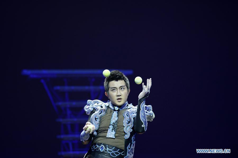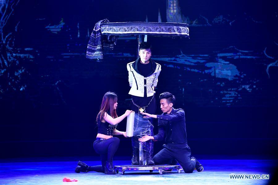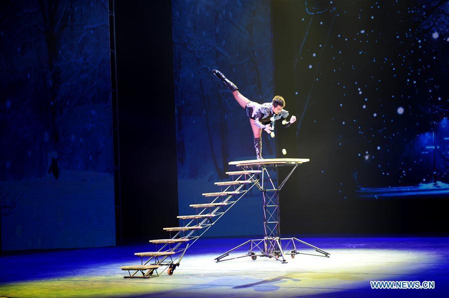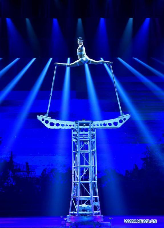 Acrobats perform during the closing ceremony of the 3rd Chinese acrobatics art festival in Luoyang, central China's Henan Province, Dec. 20, 2016. (Photo: Xinhua/Feng Dapeng)