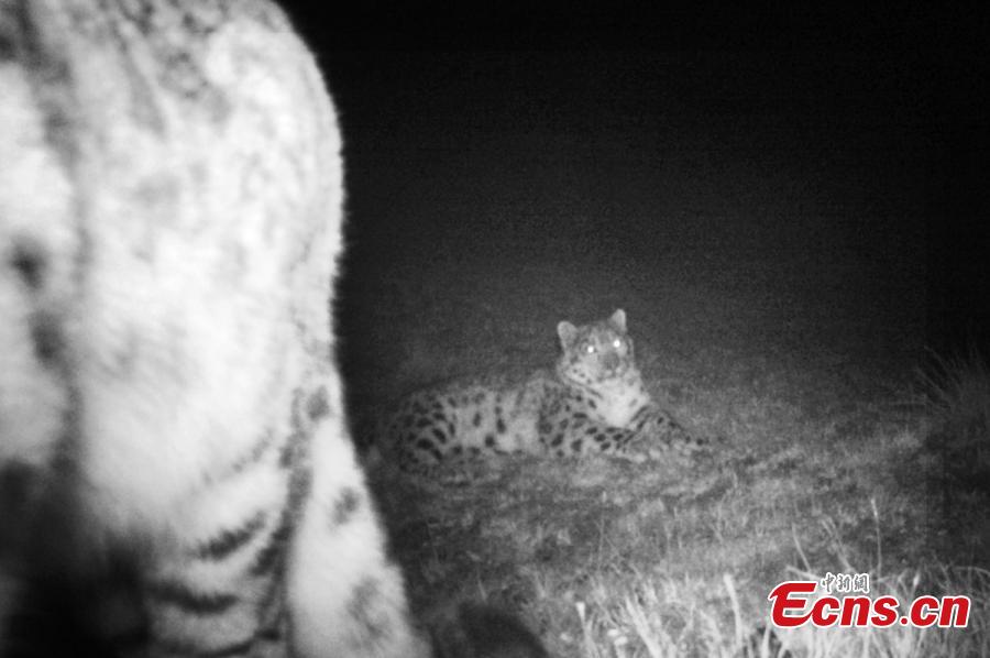 Images of snow leopards were caught by a camera installed in a forest in Xinlong County of Ganzi Tibetan Autonomous Prefecture, southwest China's Sichuan Province, according to local forestry bureau. This is the second time that snow leopards have been spotted in the area this year. Snow leopards are a Class-A protected animal and are usually found in the Himalayan ranges of Central and South Asia. (Photo provided to China News Service)