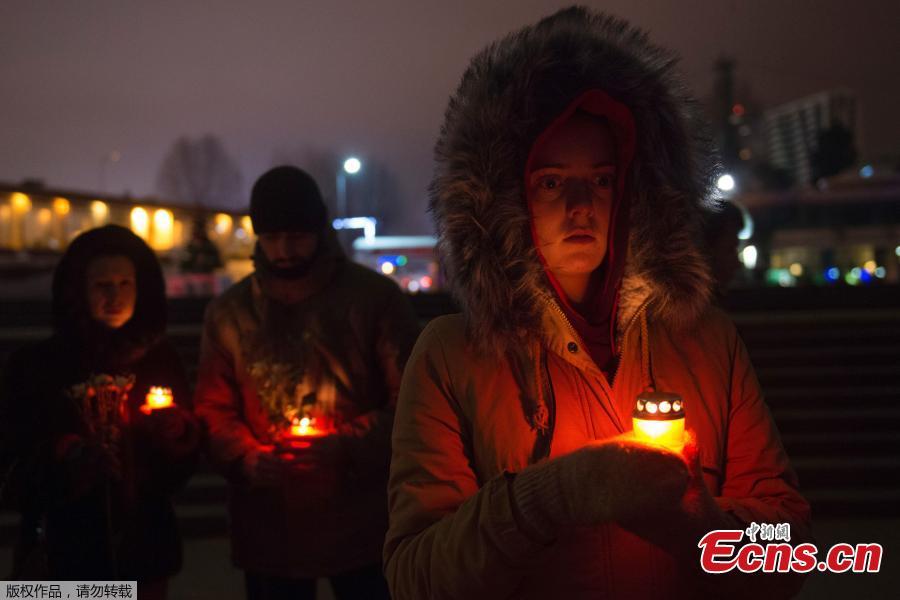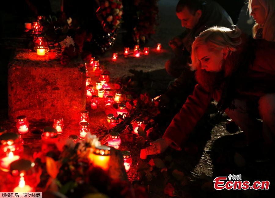 People place candles to honour passengers and crew members of Russian military Tu-154 plane crashed into the Black Sea on its way to Syria on Sunday, in the resort city of Sochi, Russia December 25, 2016. (Photo/Agencies)