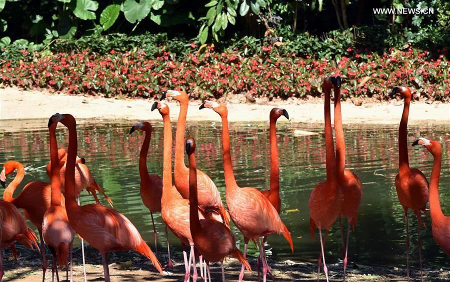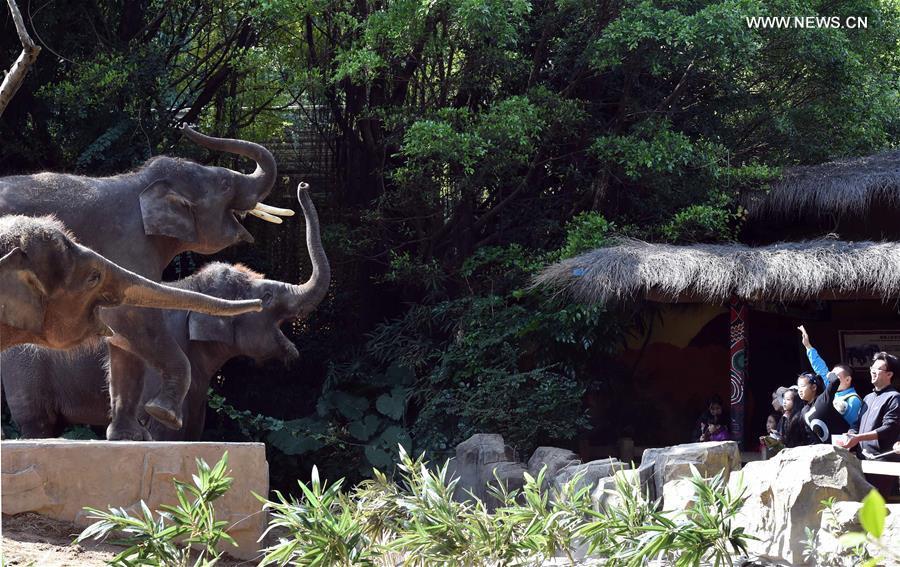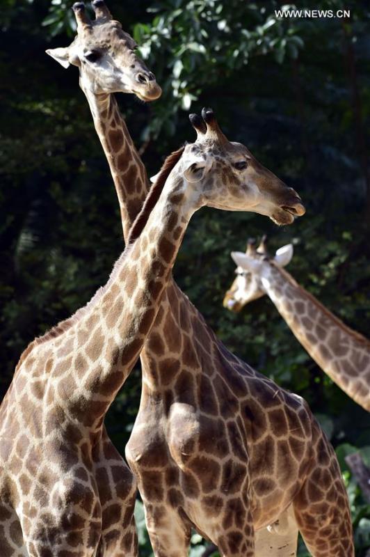 White tigers are seen at Chimelong Safari Park in Guangzhou, capital of south China's Guangdong Province, Dec. 27, 2016. (Xinhua/Chen Haining)