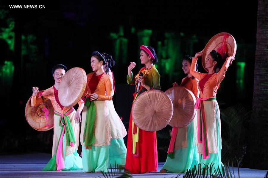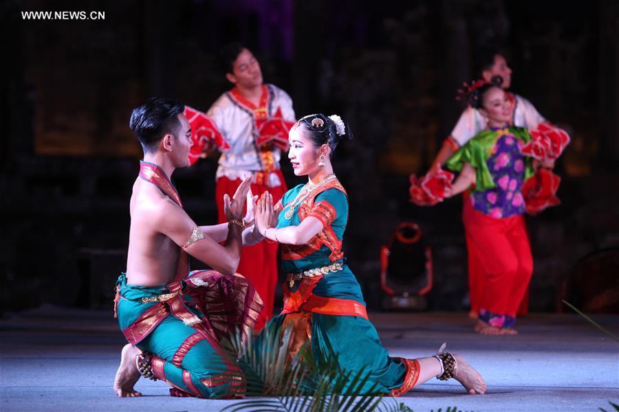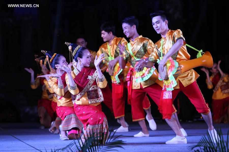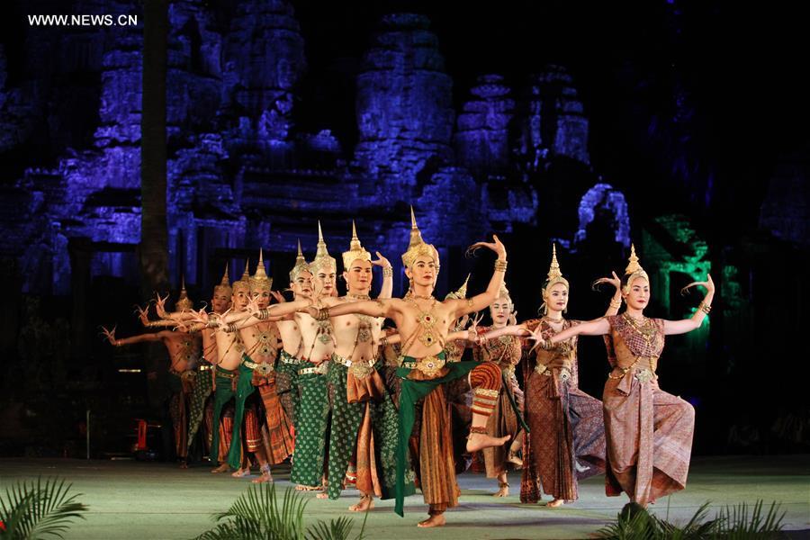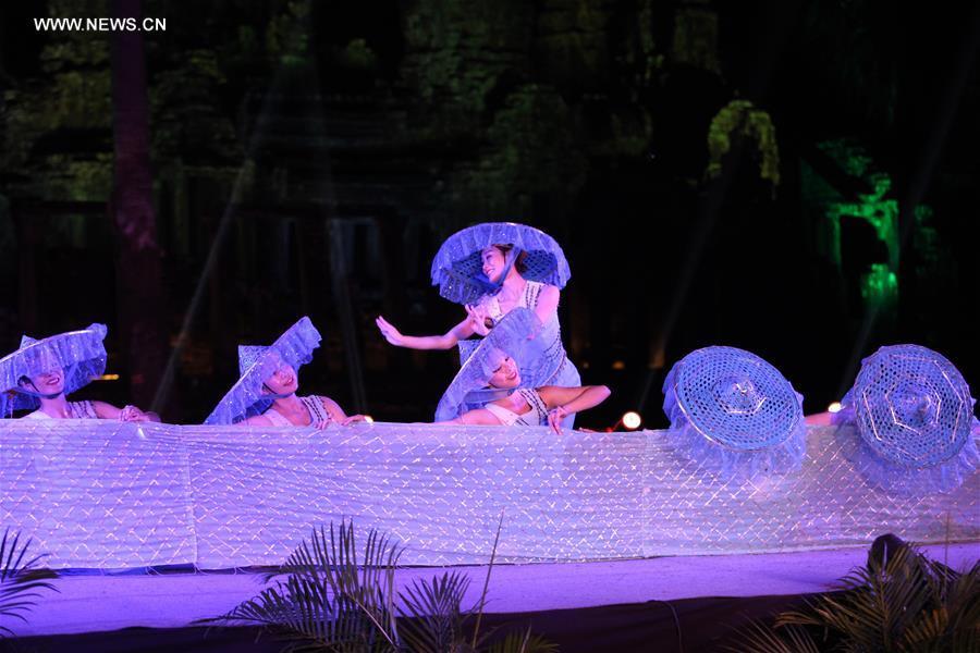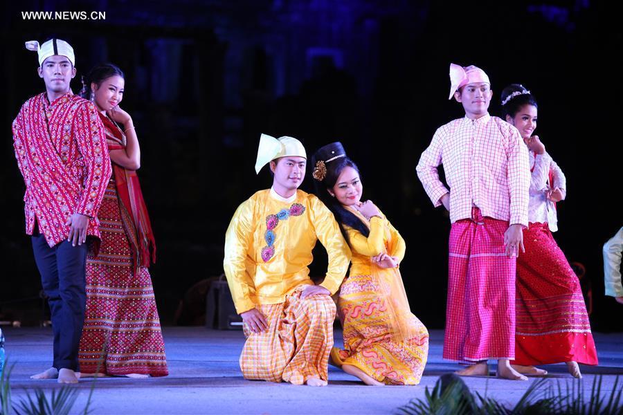 Laotian artists perform during a China-ASEAN joint cultural performance in Siem Reap province, Cambodia, Dec. 28, 2016. China-ASEAN joint cultural performance kicked off on Wednesday evening here in the complex of the Angkor archeological park, a world heritage site. (Xinhua/Sovannara)