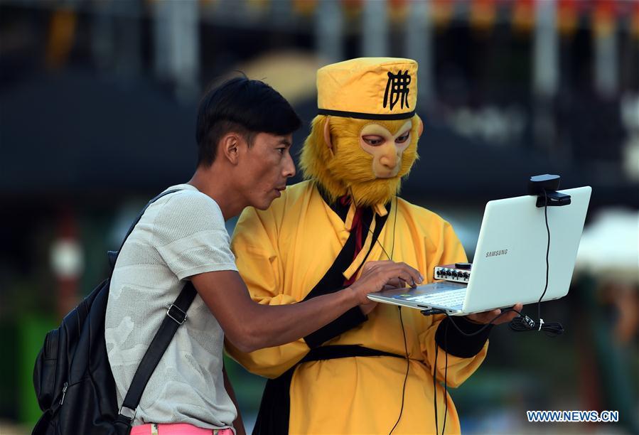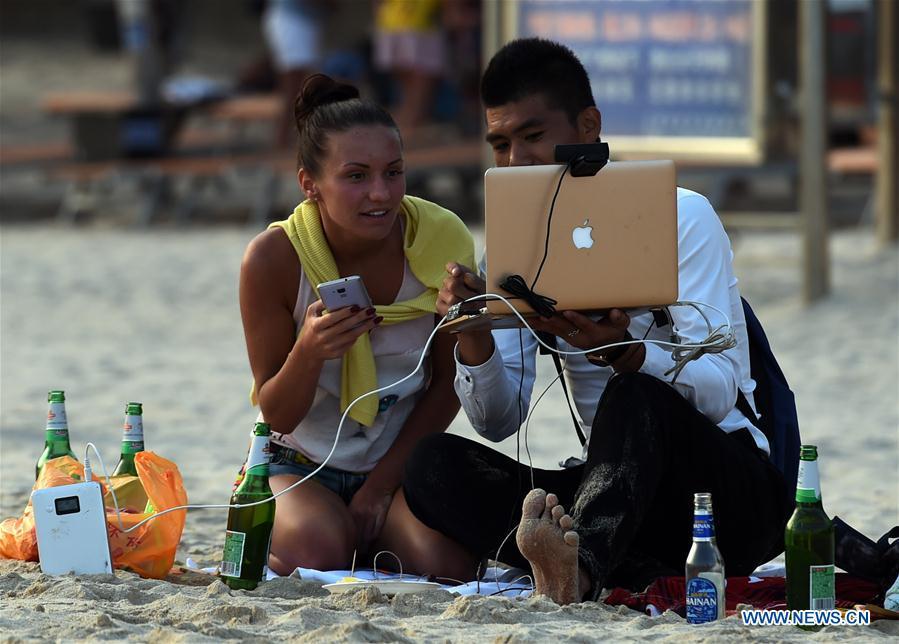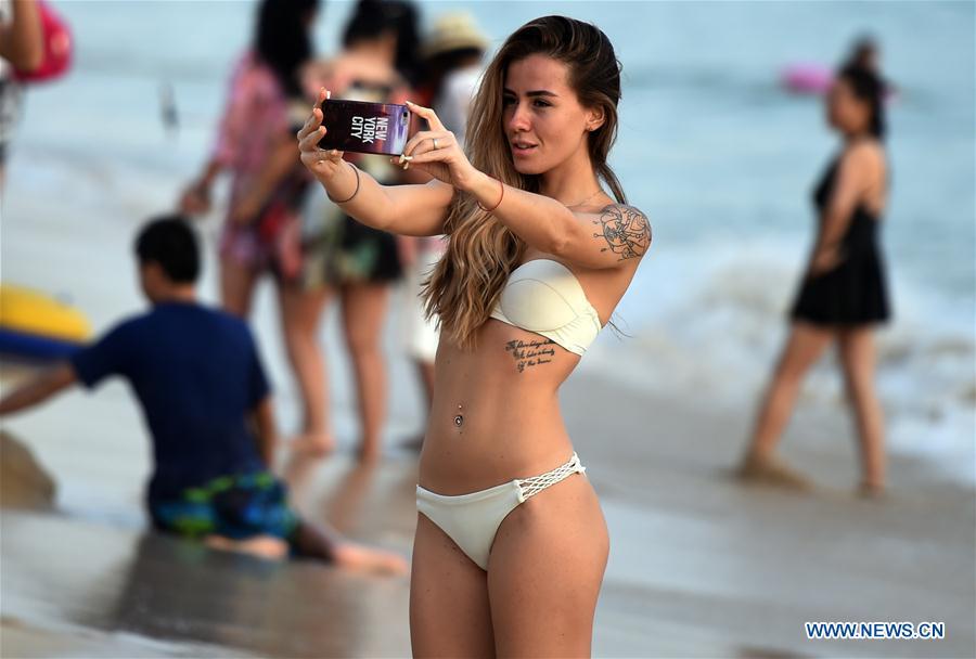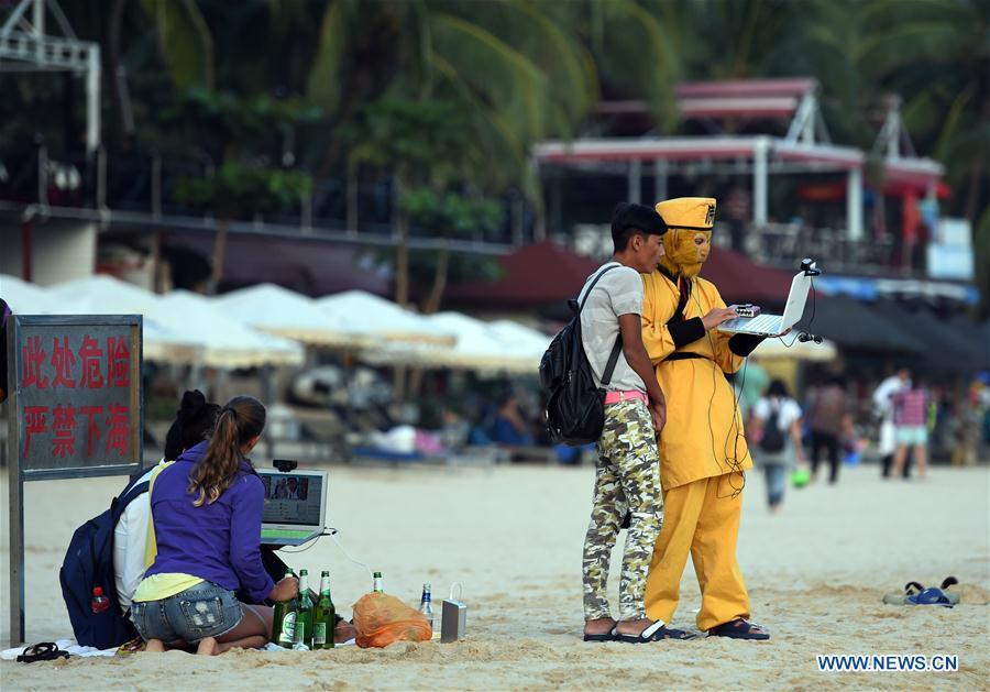 Tourists telecast live on the beach to mark the upcoming New Year in Sanya, south China's Hainan Province, Dec. 29, 2016. (Xinhua/Yang Guanyu)